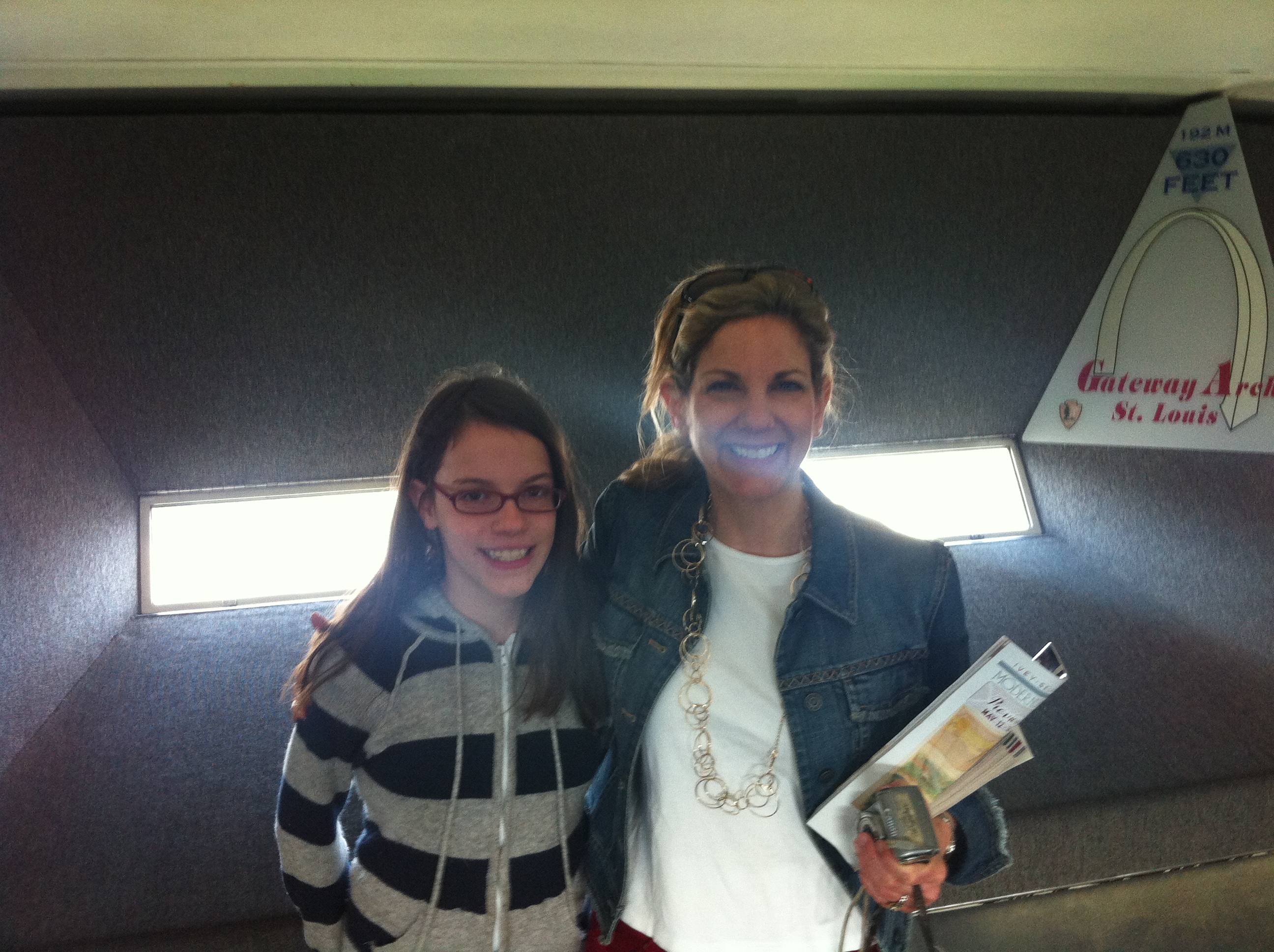 The people at the information desk showed me a model of what the elevator would be like if we returned the following day for tickets. “There is no way I’m going in that thing,” I immediately said when I peered into a rickety pre-1970’s Ferris wheel car. Instead of a view outside, it was dark – a view of the interior of the arch. Thing 2 was adamant. “We can’t come all the way here and not do this.” She was too young to ride it by herself at age 10, so I said I’d think about it.