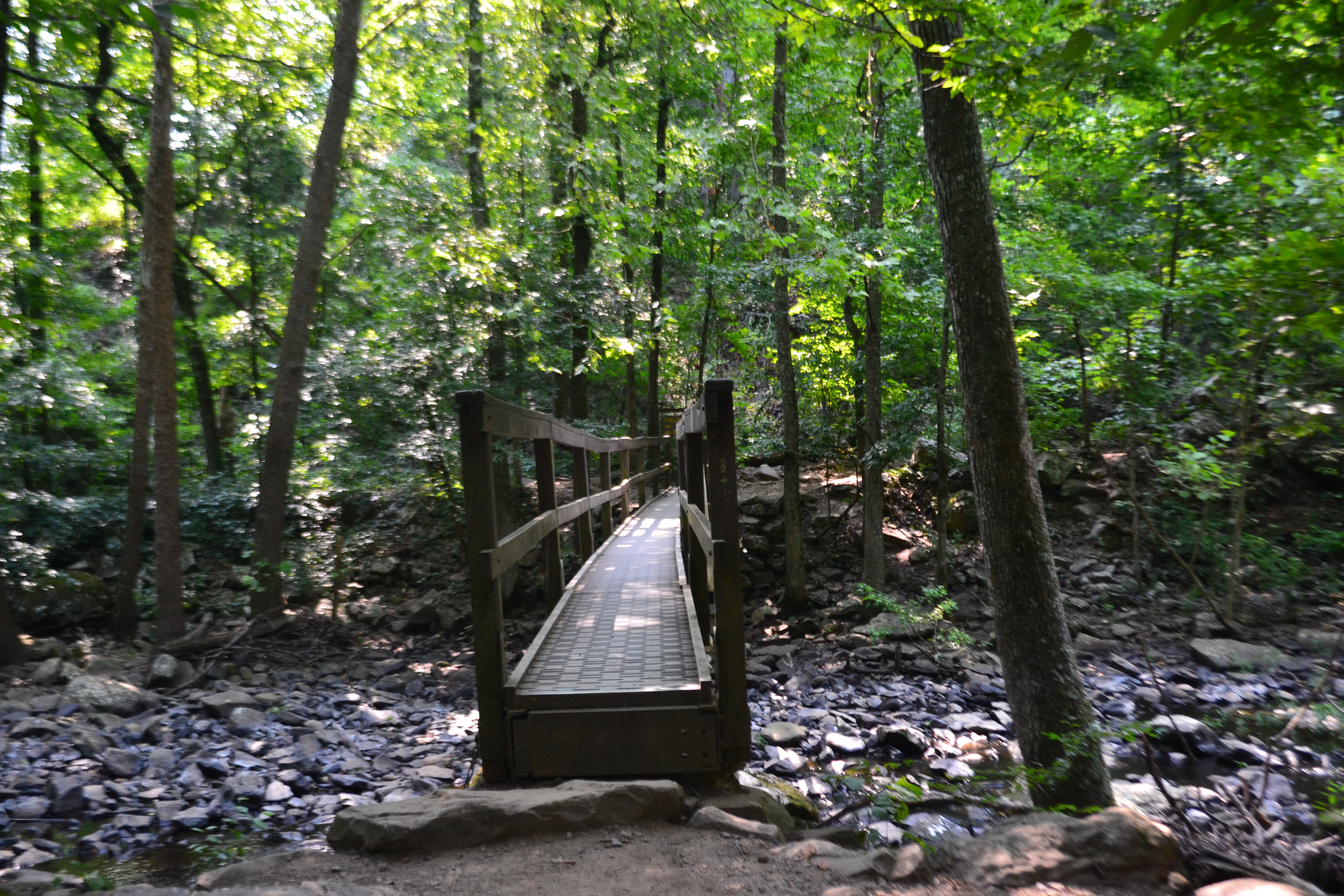 I decided to do the 2-mile Cedar Falls trail to the base of the waterfall. It consisted of about four steep switchbacks. In some places, steps had been carved out of the rock formations. I asked a man how much farther. He said it flattens out in about 20 minutes. I kept going. At the bottom, it turned sandy and led me to a bridge.