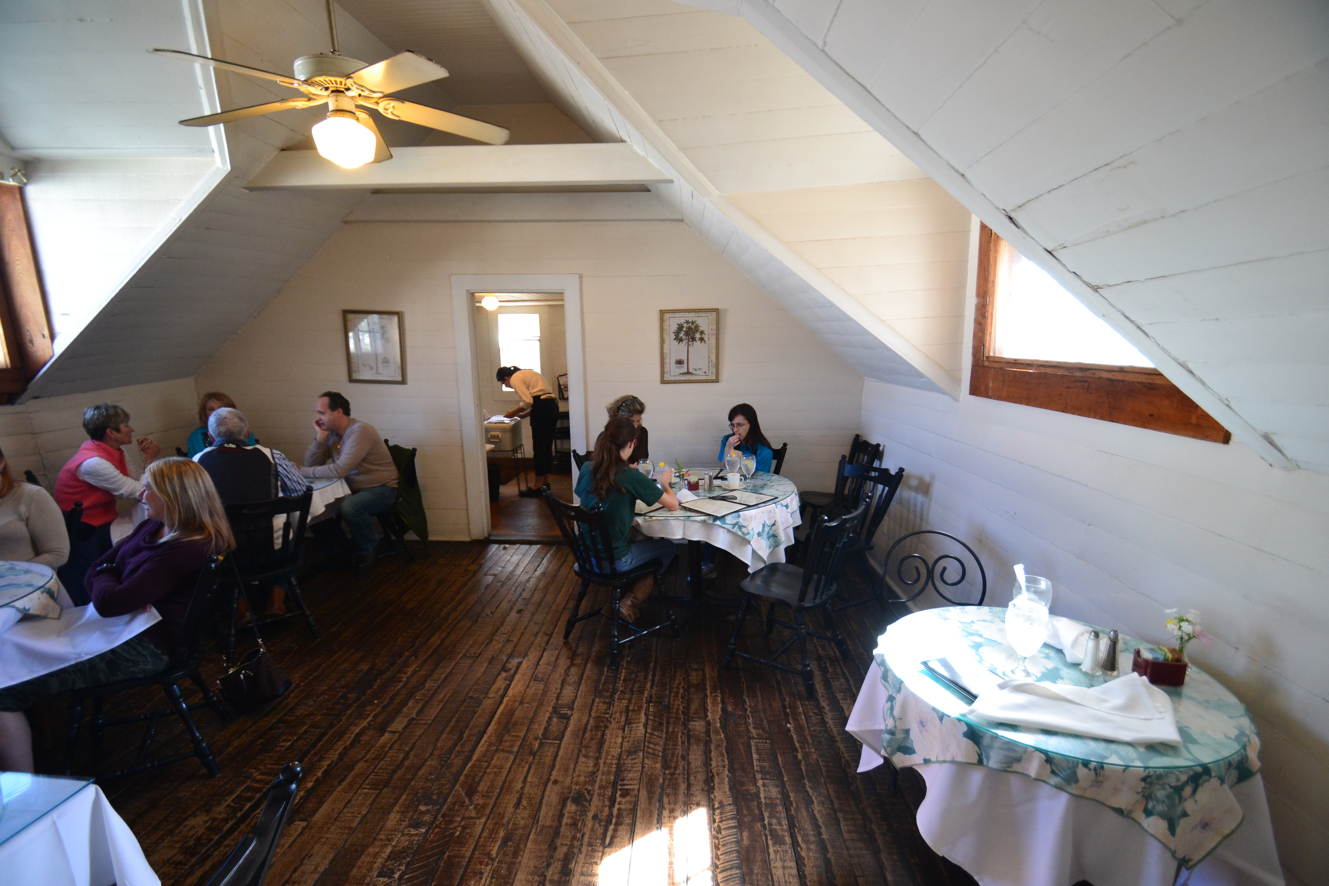 We read about the Village Cafe so we decided to try it out. It’s tricky to find, because although the address is on Main Street, you walk through a narrow path between two stores. Nestled at the end of a lush garden, the historic house awaits. Although they were completely booked with reservations, the hostess was able to find us a table upstairs. It did not disappoint!