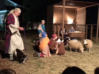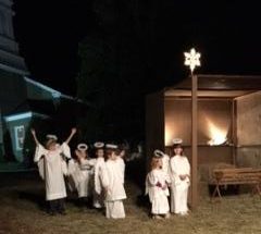Arriving about 7 pm, church bells signaled that the performance was about to begin. Sitting on bales of hay, kids waited anxiously in front of an empty wood shelter. Parents and grandparents stood behind them waiting for the show to begin. Every once in a while, a small child dressed in an angel outfit would peer at the audience.