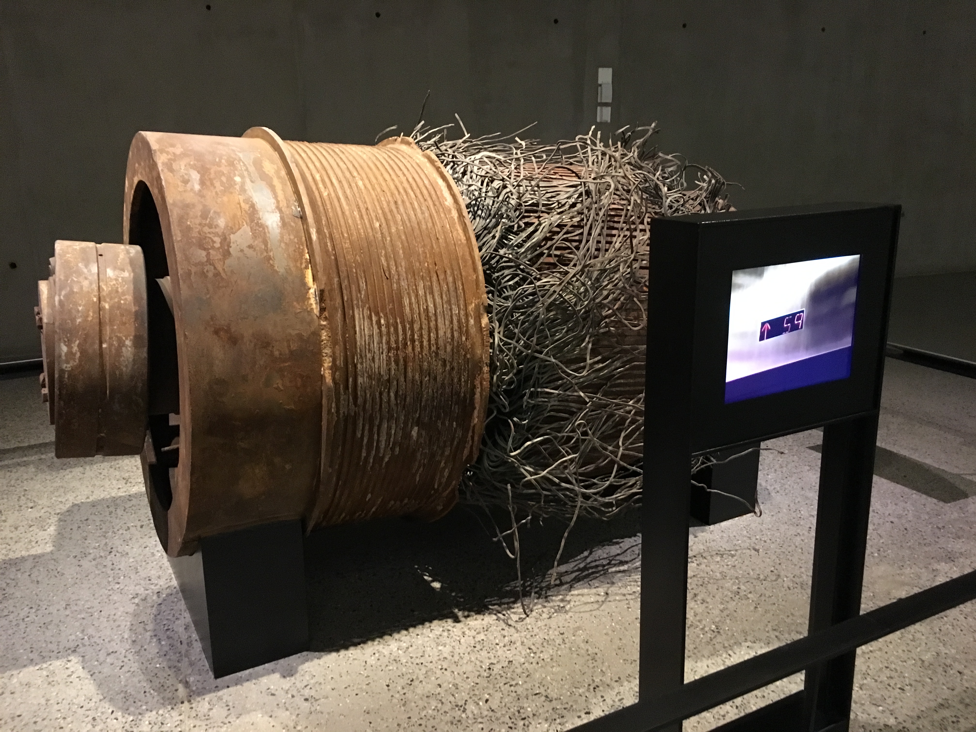 In this cavernous space, concrete ramps led us lower below ground with views of the slurry wall and a large piece of steel at the point of impact. After walking past the “survivors staircase” we arrived at the C-4 level, seven stories below the plaza above.
