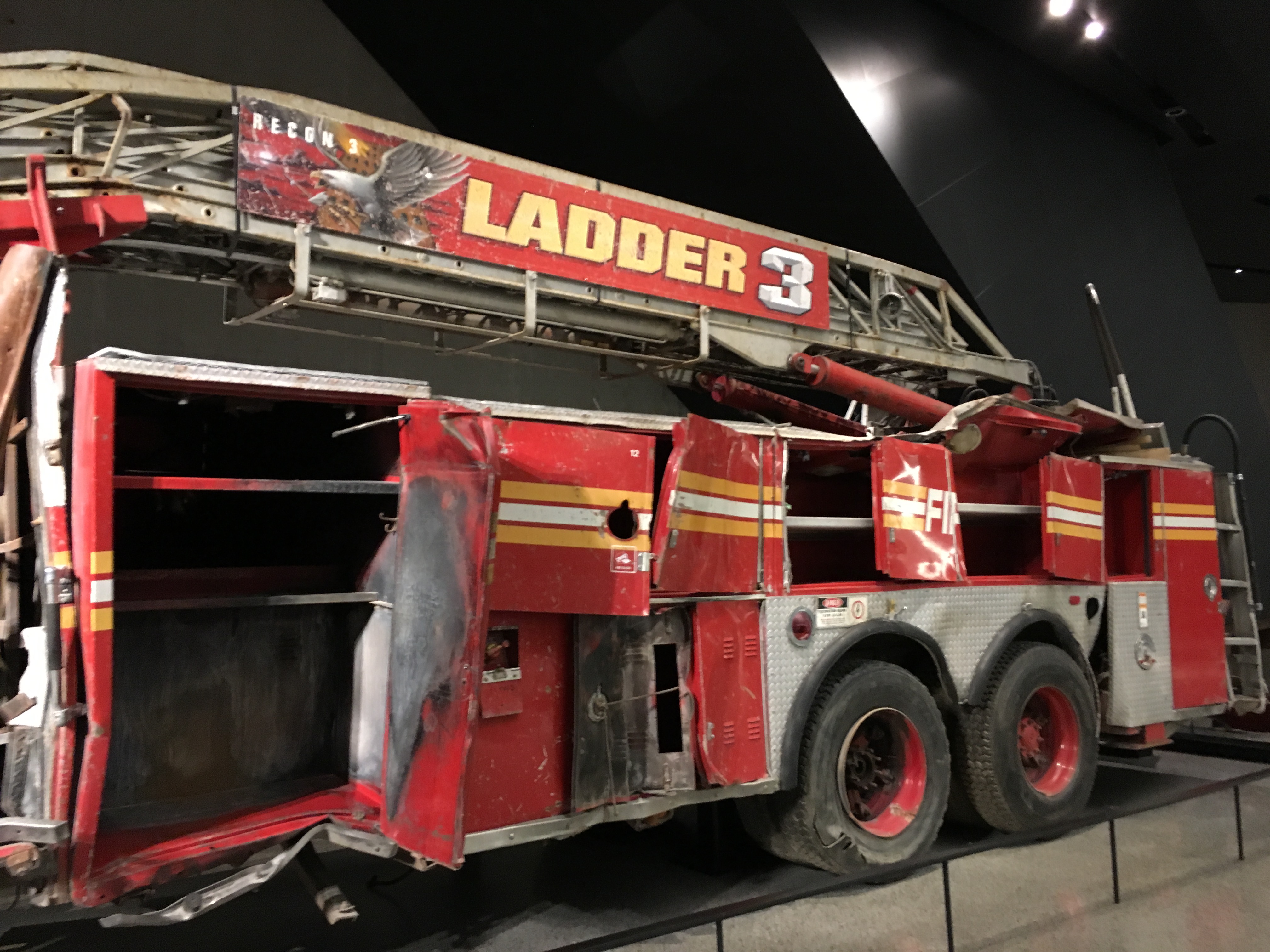 Heading to the main historical exhibition, we passed mangled steel from the point of impact, one of the radio towers and other artifacts from that day. The main exhibit “September 11, 2001” gives visitors an overview of the events leading up to, the day and the aftermath of September 11. Voices recalling the events are heard throughout the exhibit.