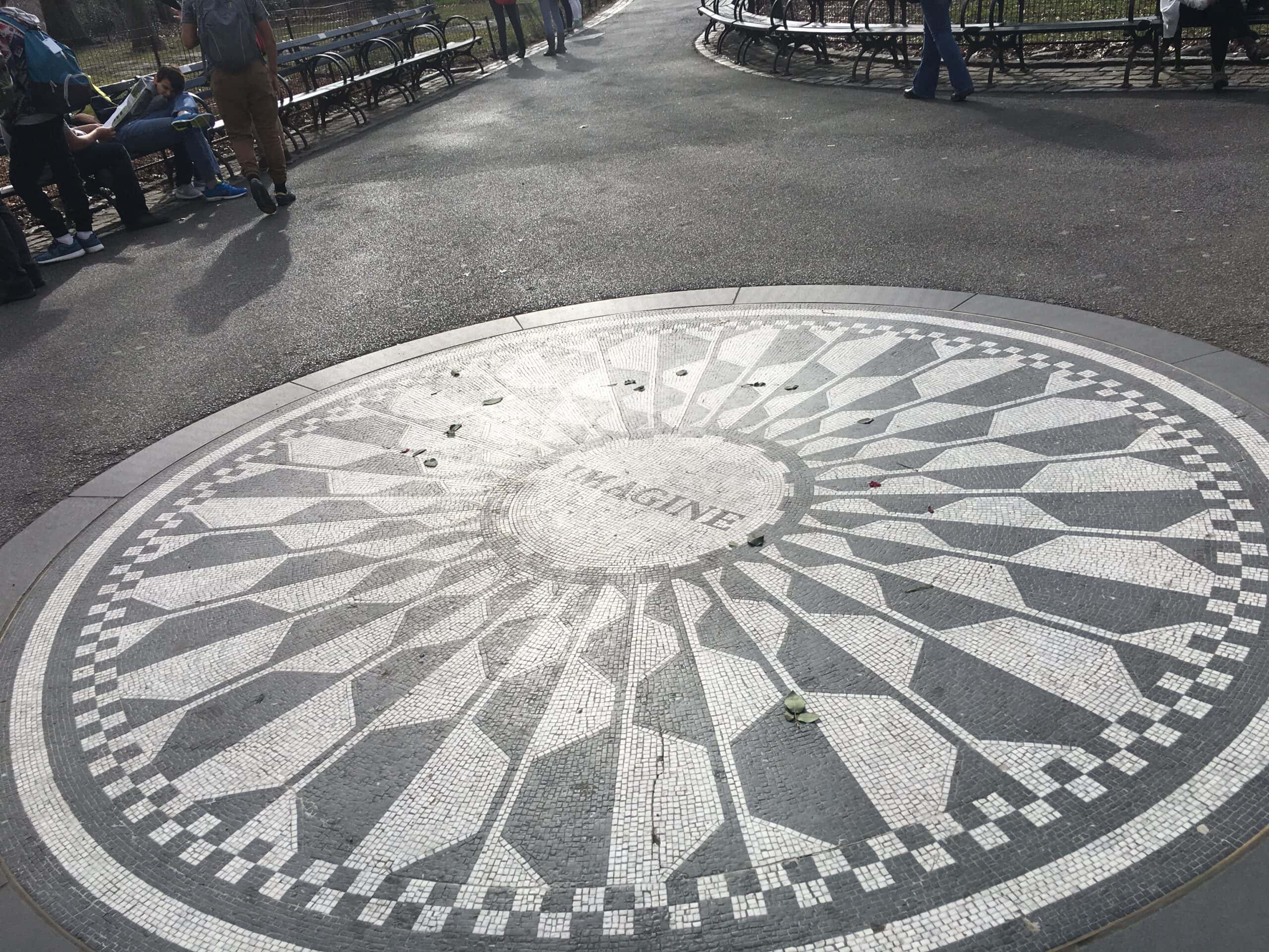 Before our flight the next day, we decided to take the subway up near Columbus Circle. Then, we stopped by the original Alice’s Tea Cup and purchased a cup of tea to go. We walked back through the park on the West Side – near 72nd. As a musician strummed Beatles’ music on his guitar, it dawned on me we were in Strawberry Fields – the 2.5-acre section of park dedicated to John Lennon who was gunned down outside his apartment building across the street.