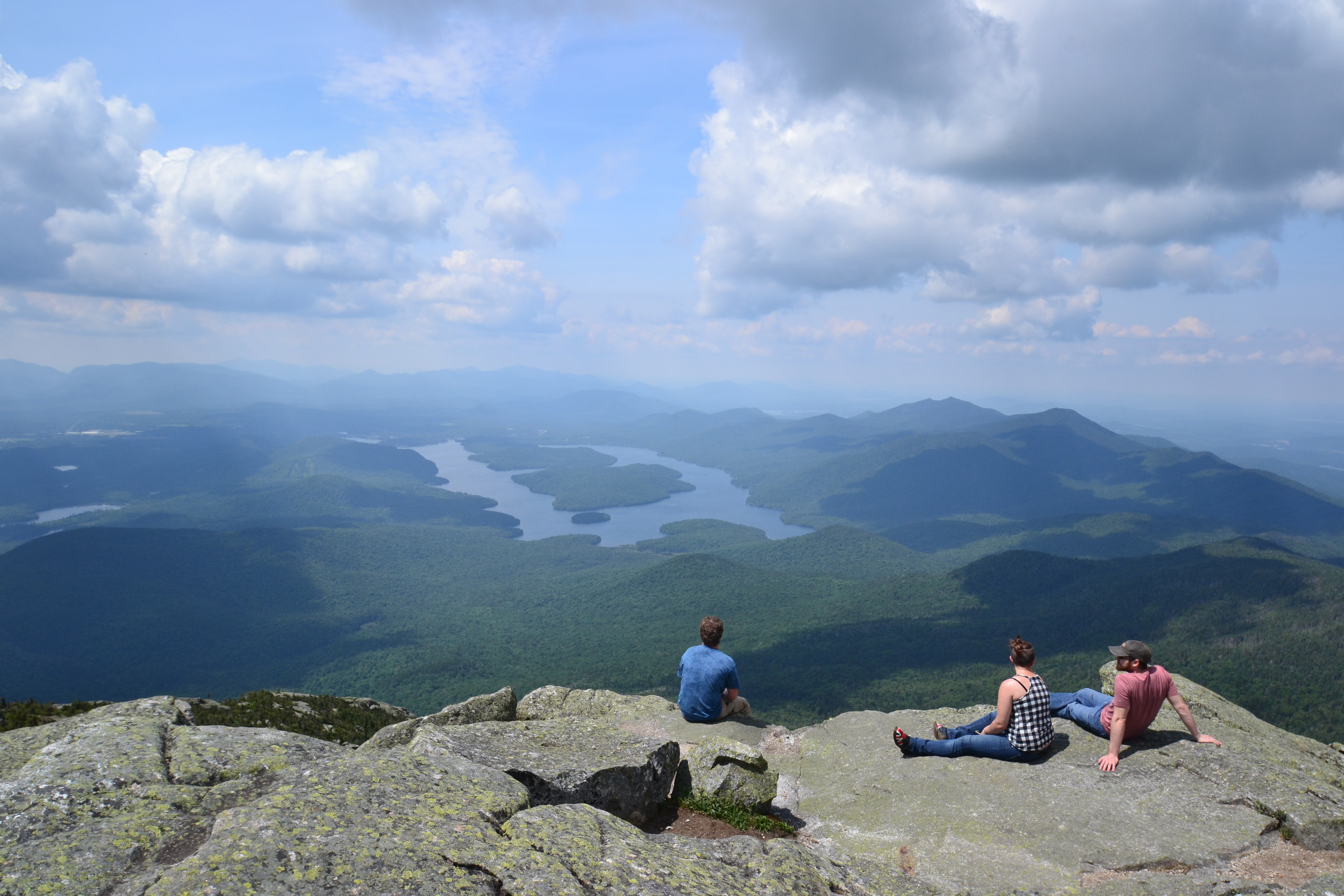 Stumbling on roots and rocks, I didn’t think this would be a fun path. However, mid-way through the path smoothed out (although still climbing). We had gorgeous views of many of the lakes that dotted the Adirondacks. At the top, we did the usual checking out of all the vantage points. But the fun thing was to go inside the stone building that holds a weather center. Inside this small museum was information regarding the dedication of the center and a time-lapse picture of the same view from each day in the previous years. So you could look at the view today, see what it was last March, the previous December, even the previous same day in June to see the changes – from knife-cold snow to brilliant oranges to budding springtime.