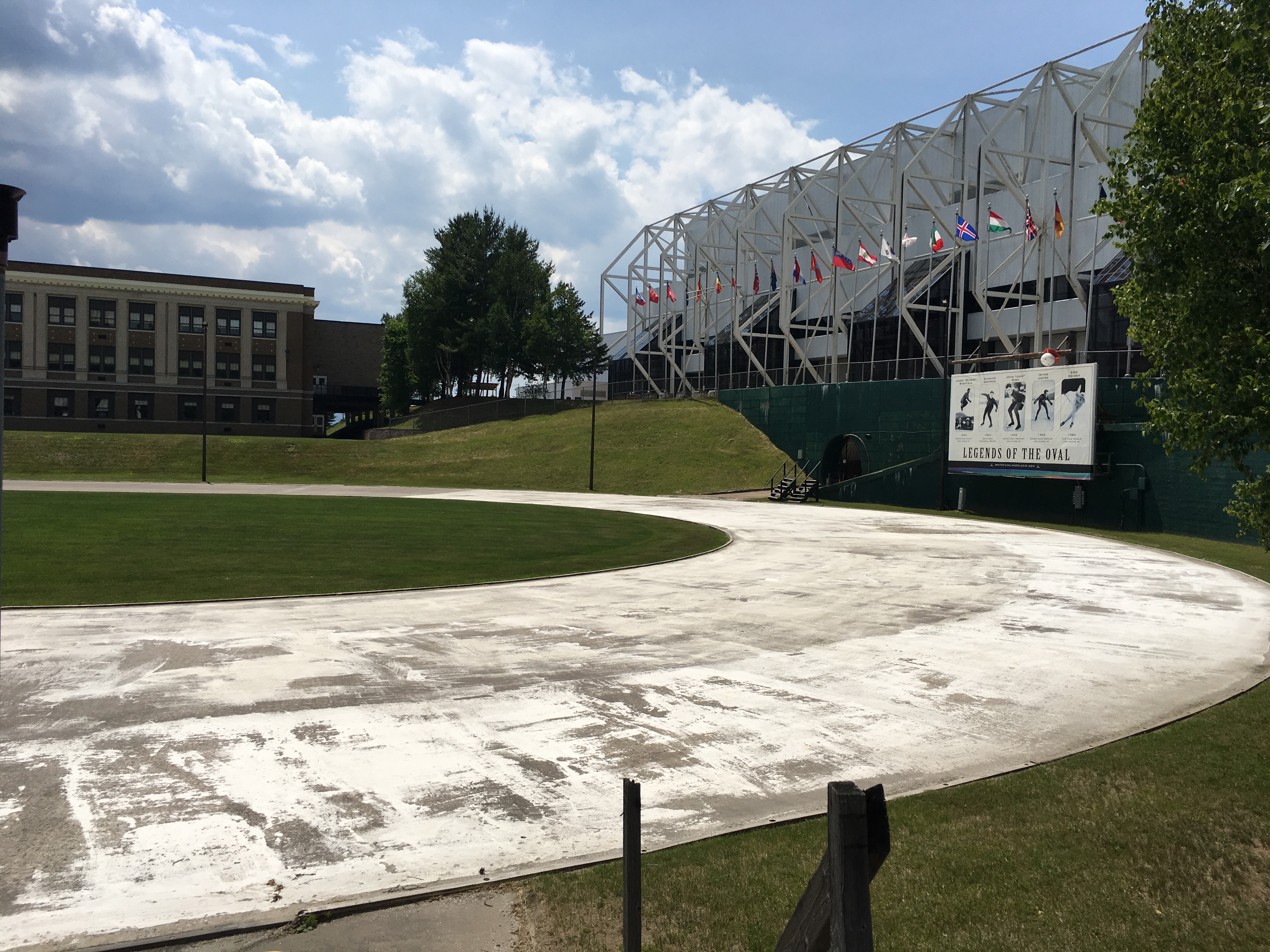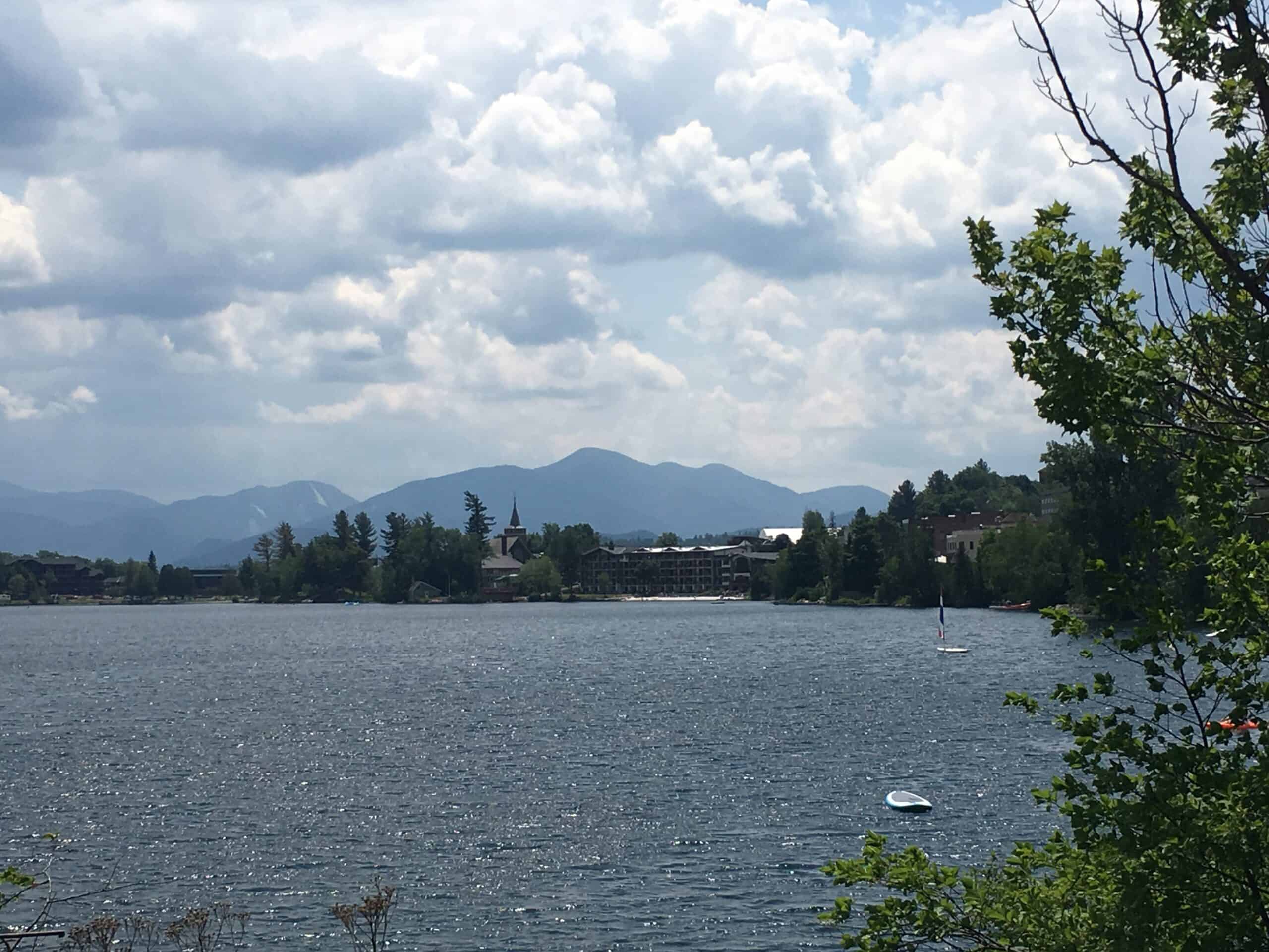 Taking the 2.3 mile hike around the lake, we passed cute village shops. At the southern end a bit south of the lake, we passed by the Olympic buildings for both 1932 and 1980. In front of the high school was the track and Olympic Rings. If we had more time, we would have gone to the Lake Placid Olympic Museum.