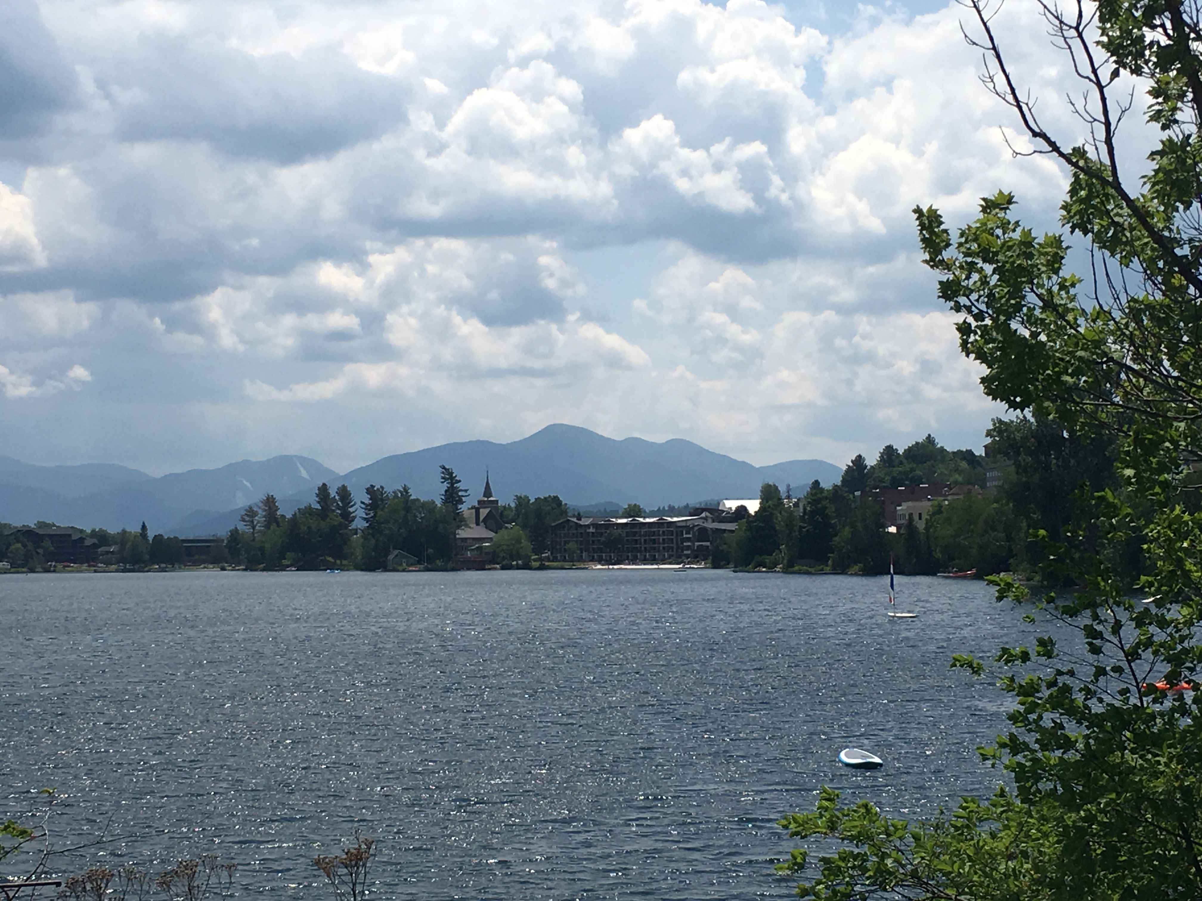 Then, we drove into the tiny village of Lake Placid. Ironically, the Main street is situated on Mirror Lake. Lake Placid is on the northern end and is fronted mainly by a marina. We ate at the Cottage Restaurant on mirror lake while watching canoes and watercraft on Mirror Lake.