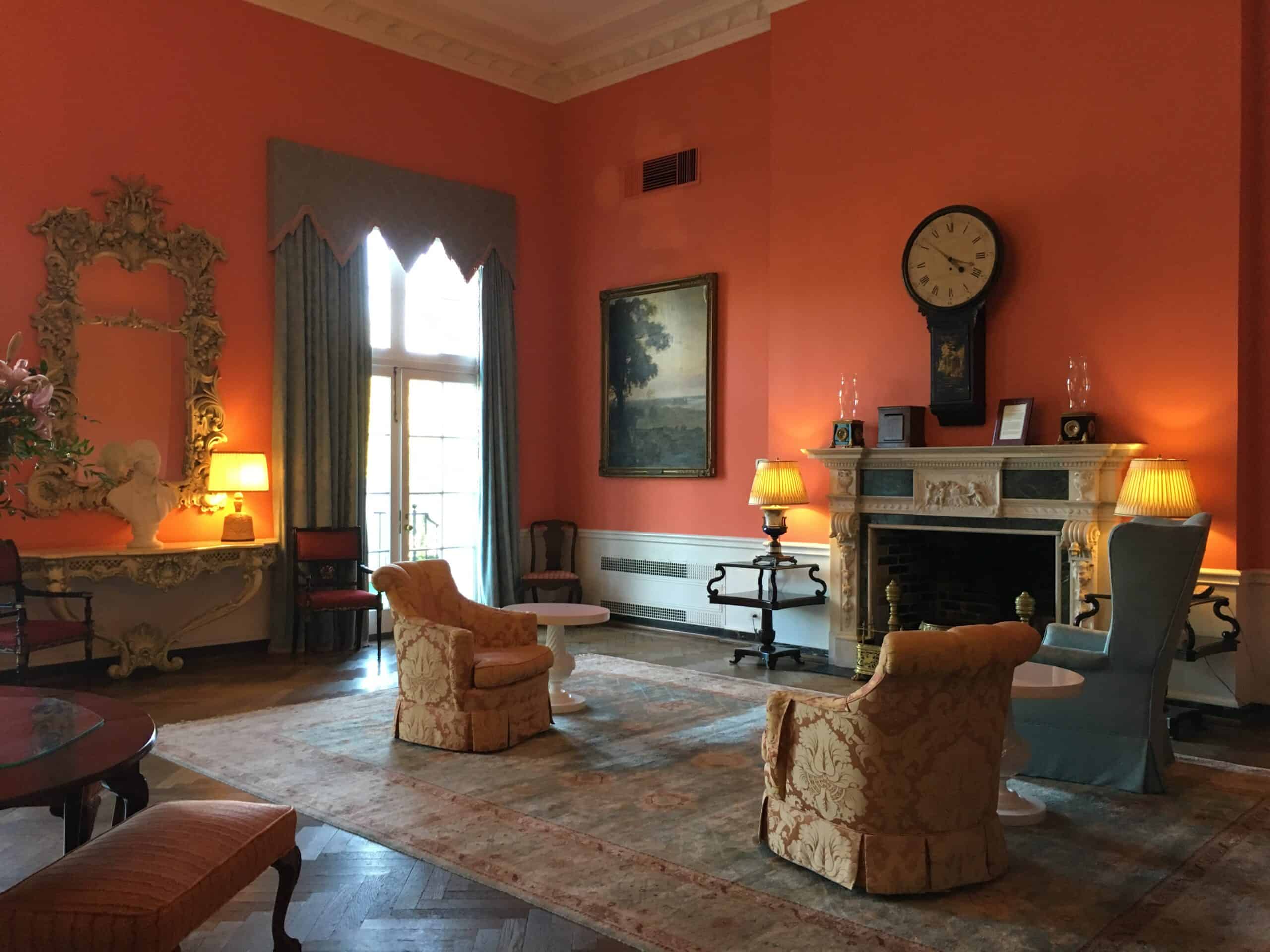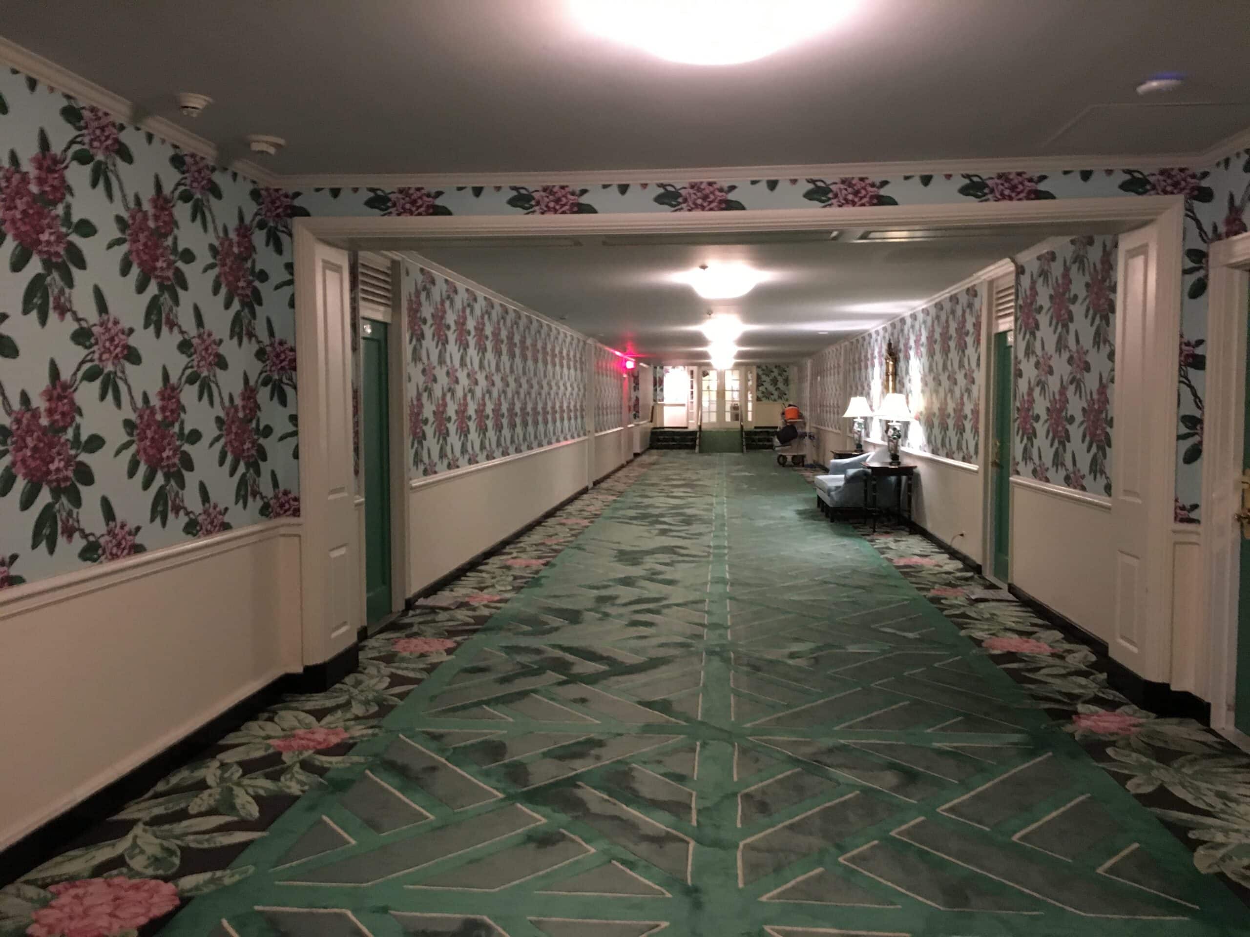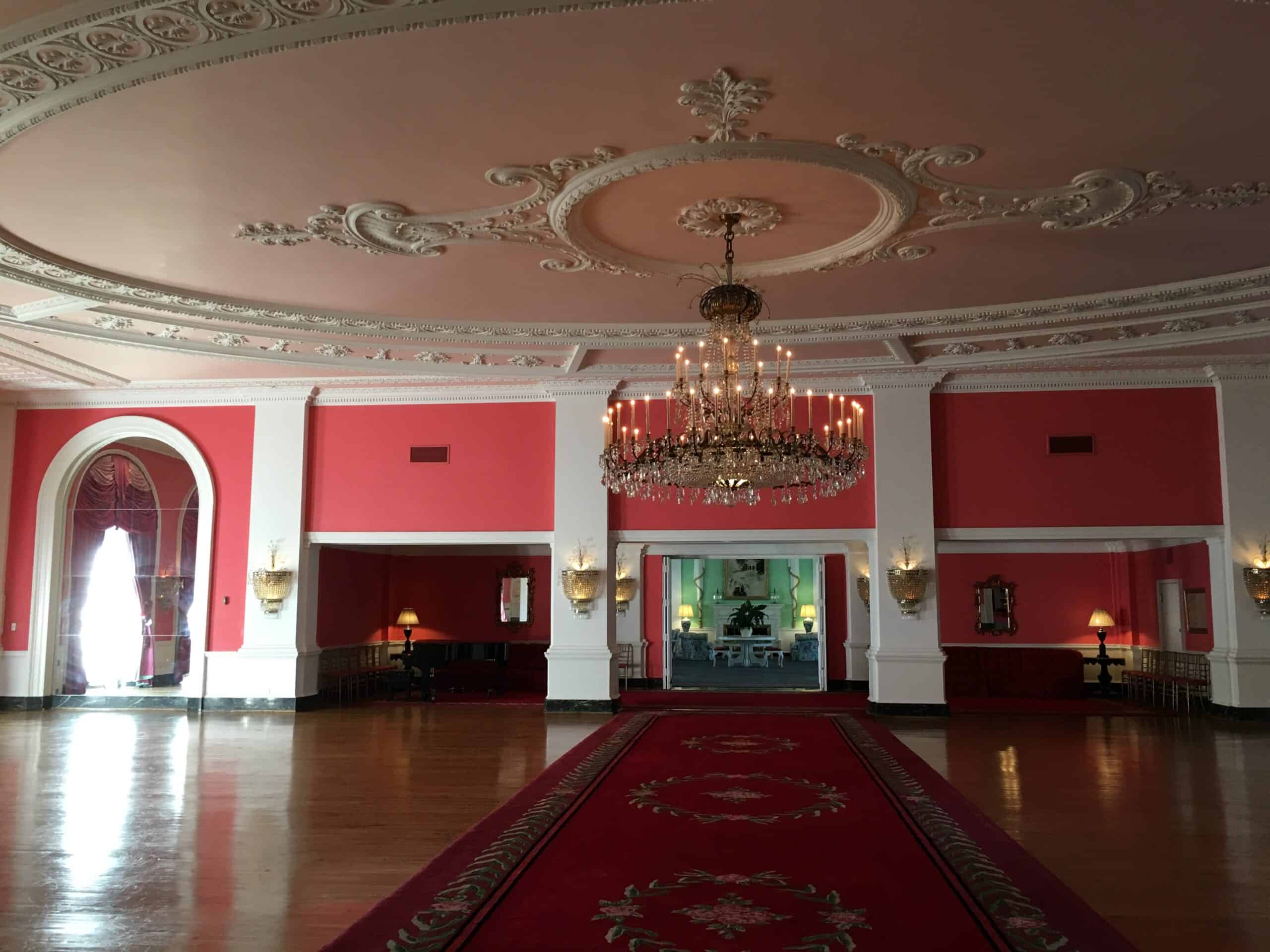 We kept walking through lobby after lobby. The formal writing room fronted the back of the building. To the right of it was what I’d call a gentlemen’s parlor with forest green furniture, a bar and backgammon tables. A large pink ballroom was next followed by the North lobby.
