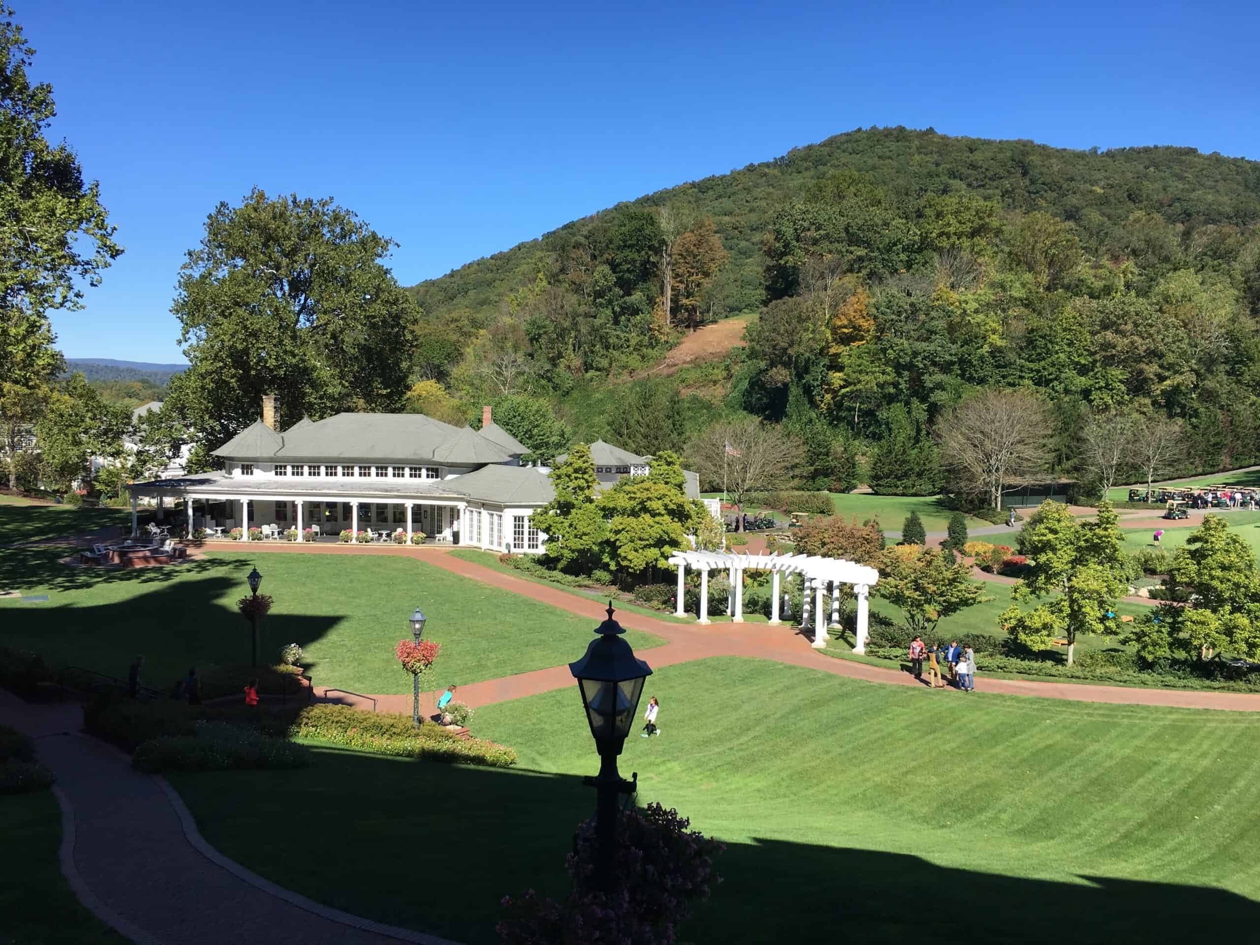 Founded in 1766, the Omni Homestead rivals the Greenbriar. Remember these were both in Viriginia when founded as West Virginia didn’t become a state until 1861. A little less pretentious and right in the middle of town, we drove through a residential area (reminiscient of the Grove Park Inn) onto the grounds into a parking lot. the massive red-brick, Federal style hotel looked very Thomas Jefferson. The sun glistened on visitors sitting in rocking chairs on the front porch.