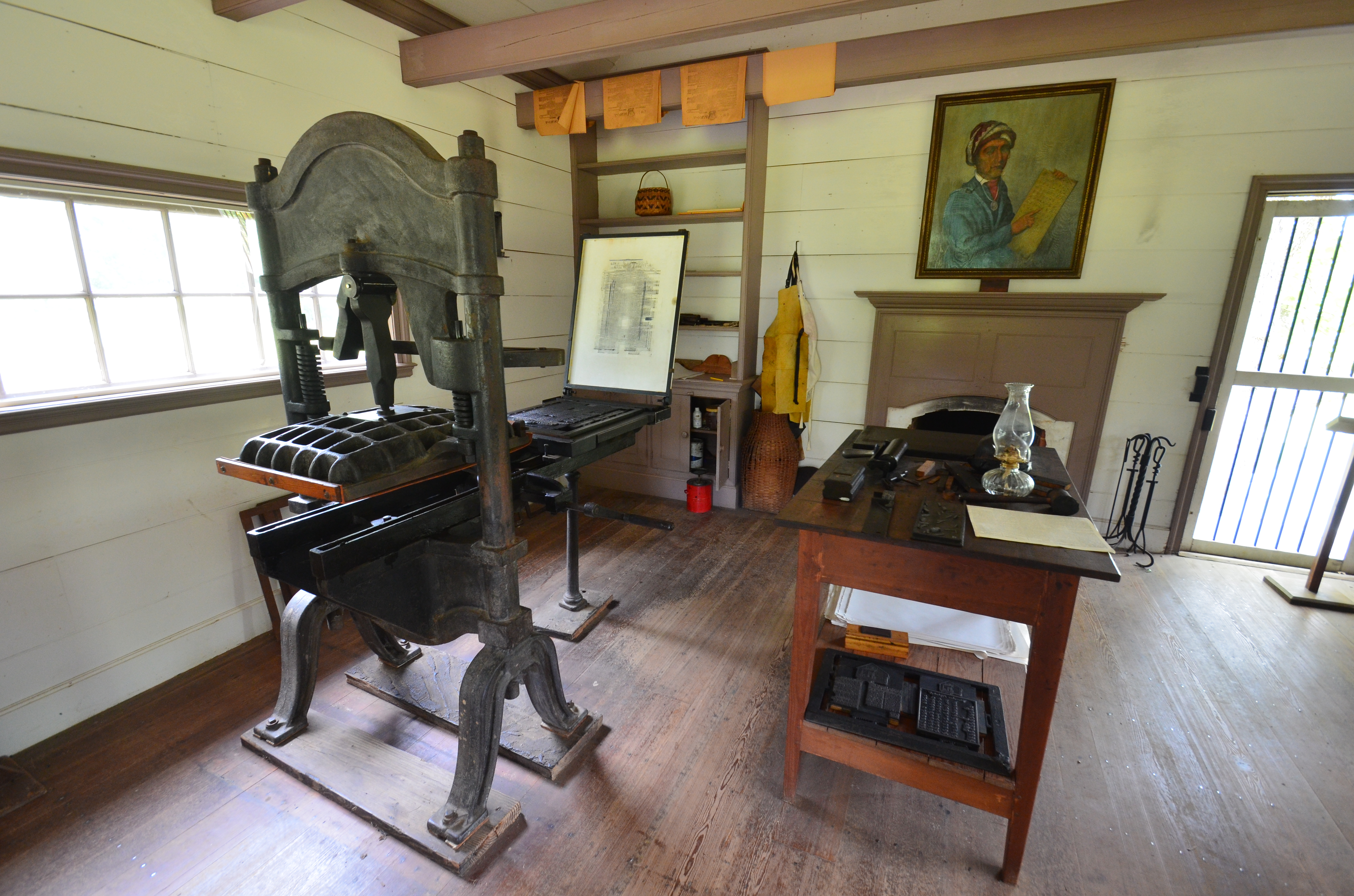 It is a sad chapter in U.S. history, but thankfully the park was begun in 1962. Today, a volunteer explained the workings of the printing press and how much work went into getting the weekly newspaper printed. Did you know they stored all the type (individual letters to form words) in cabinet drawers. The Capital letters were in the top drawer and the rest in lower drawers. Hence the term uppercase and lowercase letters!