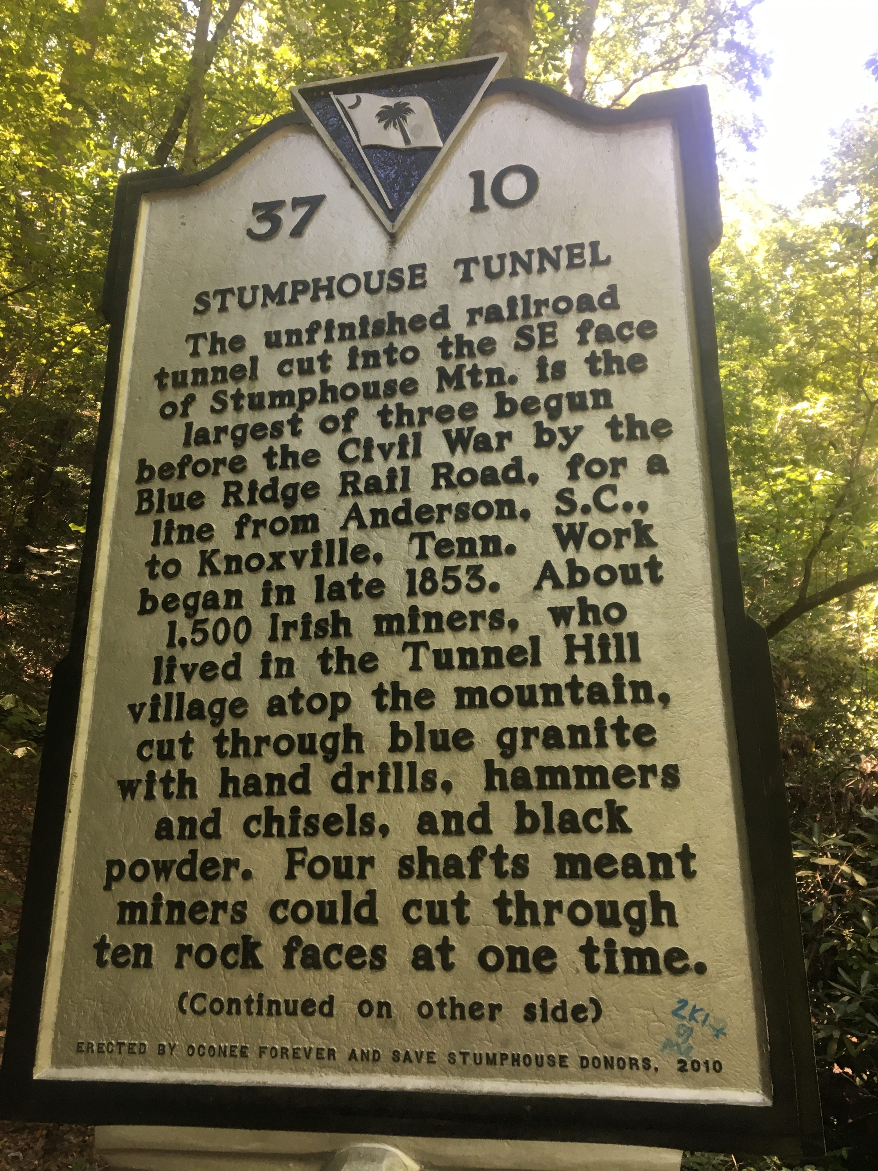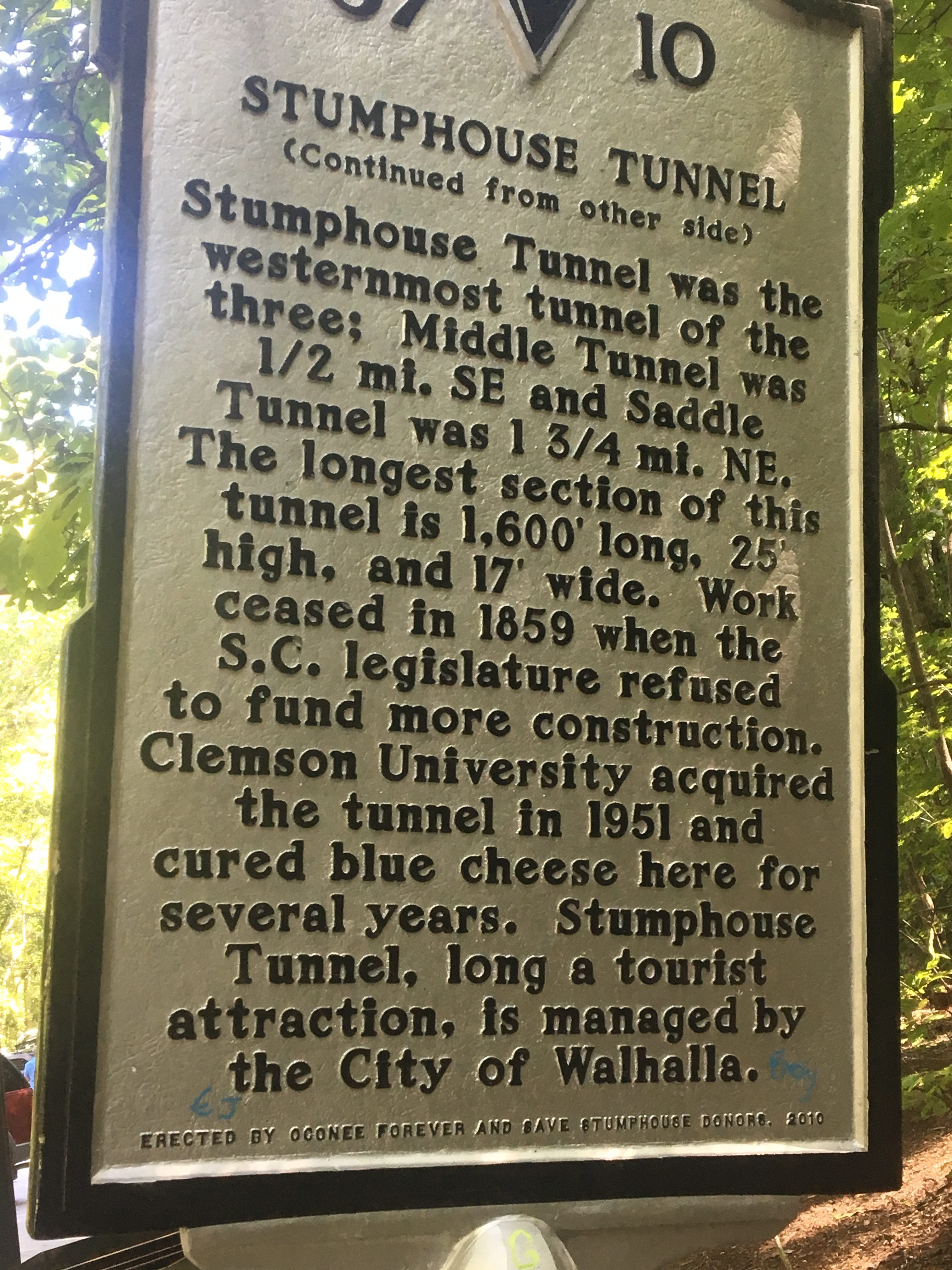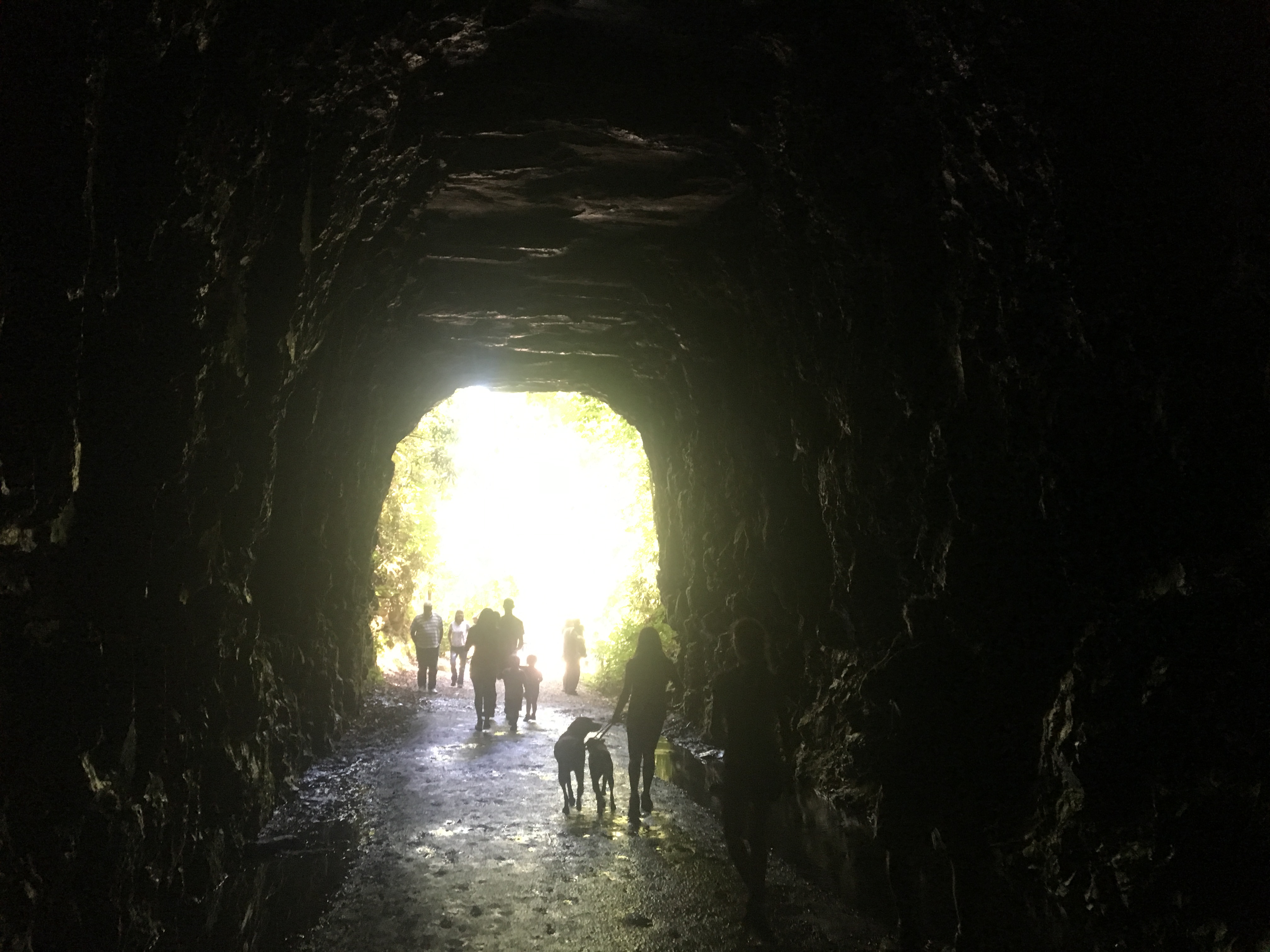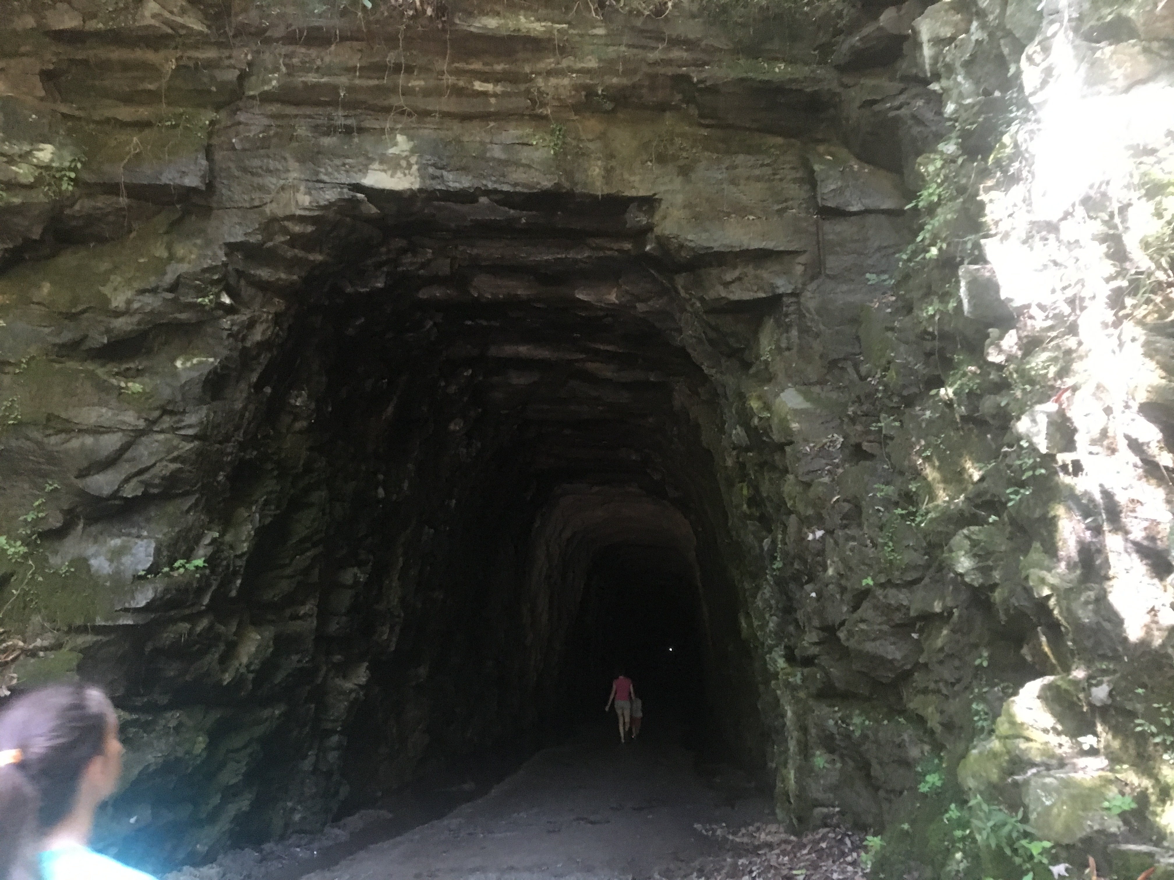 In a nutshell, construction of a railroad tunnel through the mountain began before the Civil War, but was never completed. Now, you can walk in the tunnel area. Using our flashlights from our cellphones, we could feel the cool air as we walked through the wet, sometimes sloshy, earth.