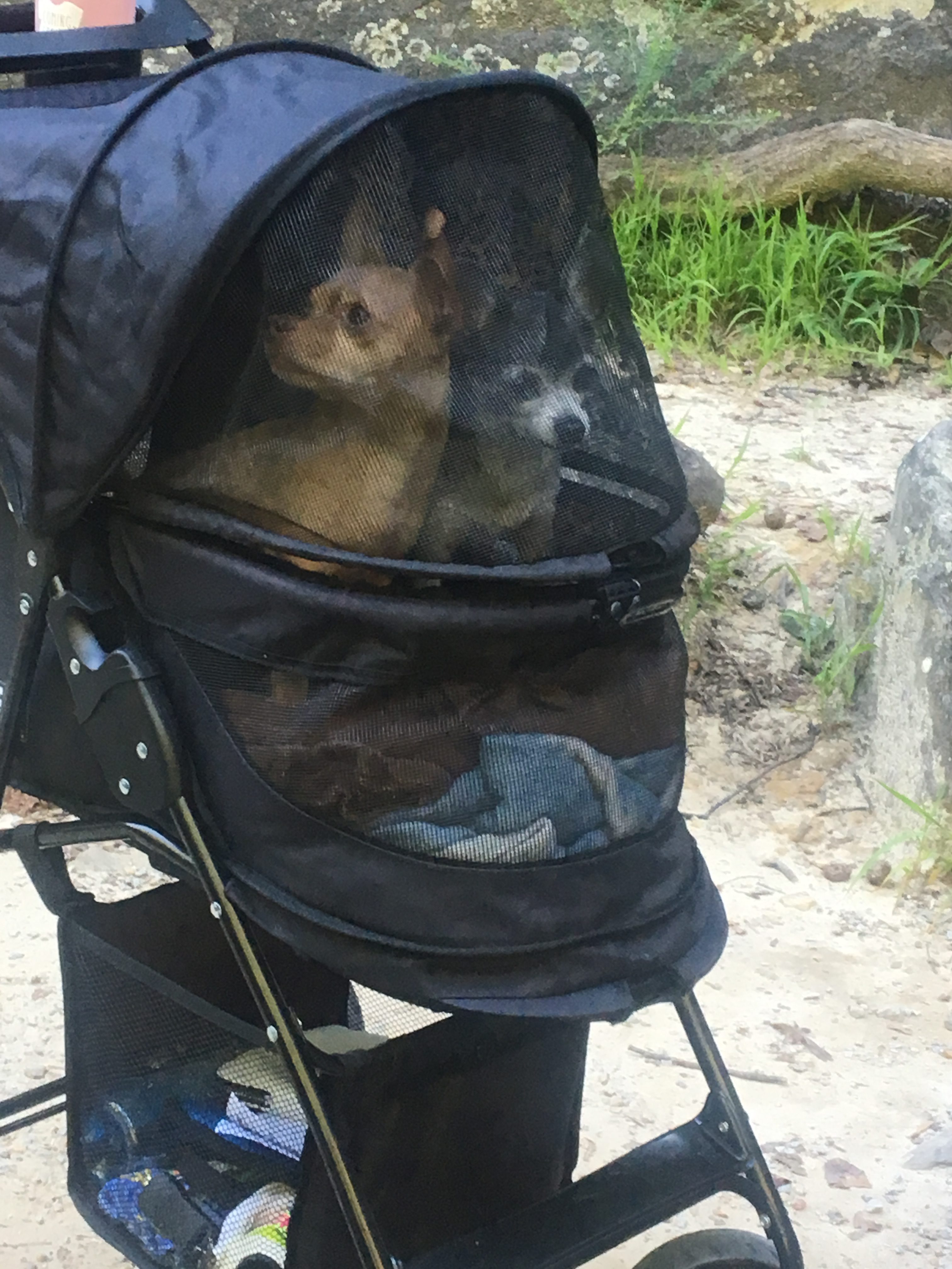 Just about five miles down the road, we parked at Yellow Branch Falls. The trail is about 1.5 miles to the falls. As we climbed up and down, dodging tree roots along the rugged path, we passed friendly hikers and other dogs. After 1.5 miles, we came to the falls.