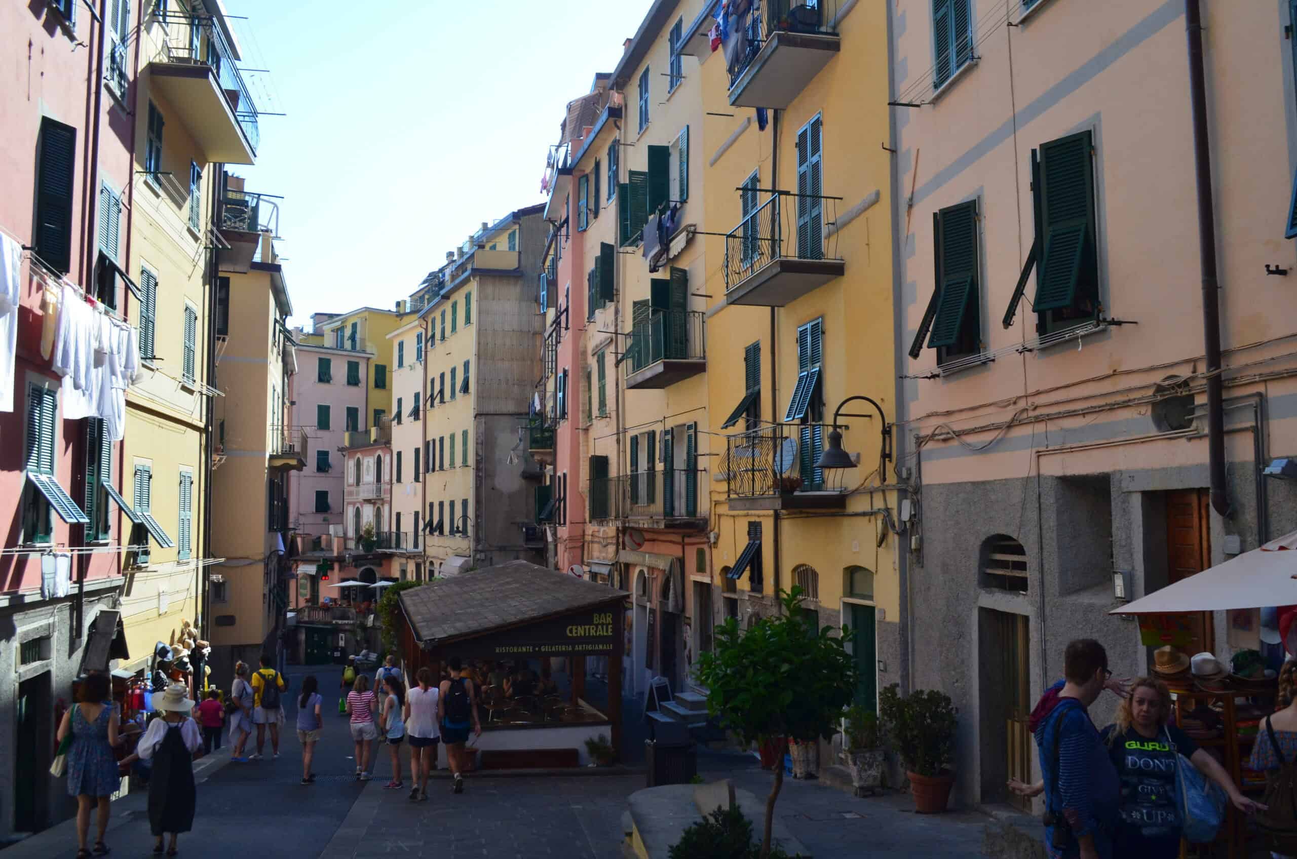 On the way to Genoa from our afternoon in Lucca, we were near Riomaggiore. We decided to stop and walk around. Normally, I wouldn’t advise driving to the region as parking is often difficult and expensive. However, we were in a car and it was late afternoon when tourists would be returning to cruise ships and nearby areas. We decided to chance it. DH dropped us off where traffic was limited to local vehicles. He then drove back up the mountain to search for a parking place.