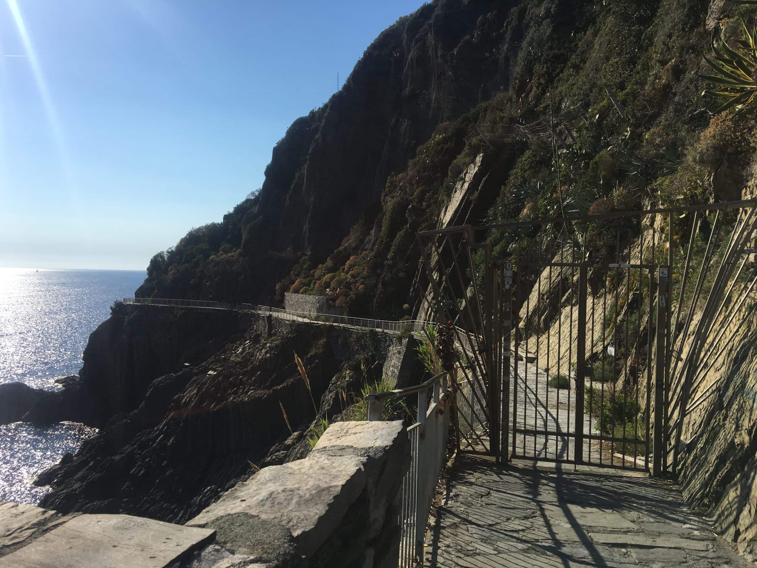Now refreshed, everyone was feeling better and we decided to see about walking the Via del Amore to the next village, Manarola. Information was hard to come by, but heavy rains back in 2011 wiped out parts of the 11 km hiking trails, also called the Cinque Terre National Park. Some websites said the trails were fixed, but others said that the easiest trail – the 1 km trail from Riomaggiore to Manarola (also known as Via del Amore) was still closed. A locked iron gate confirmed the news.