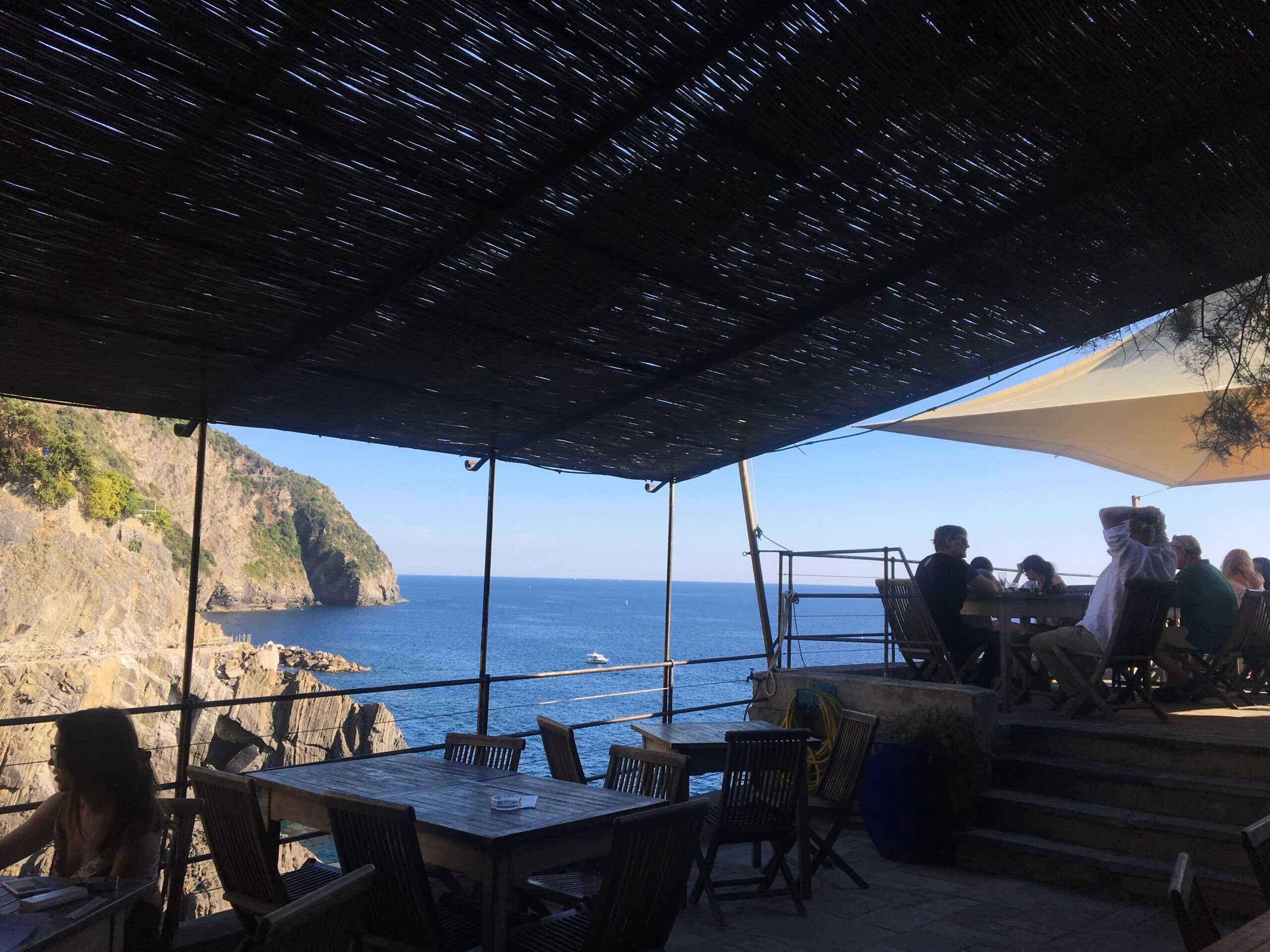 It was time for refreshments! I felt food and caffeine would hopefully do the trick. We walked towards the Via del Amore in search of a quiet cafe. We found an outdoor wine bar – A Pie’ de Ma’ with outstanding views. We ordered bruschetta and watched as villagers tied up their boats for the evening.