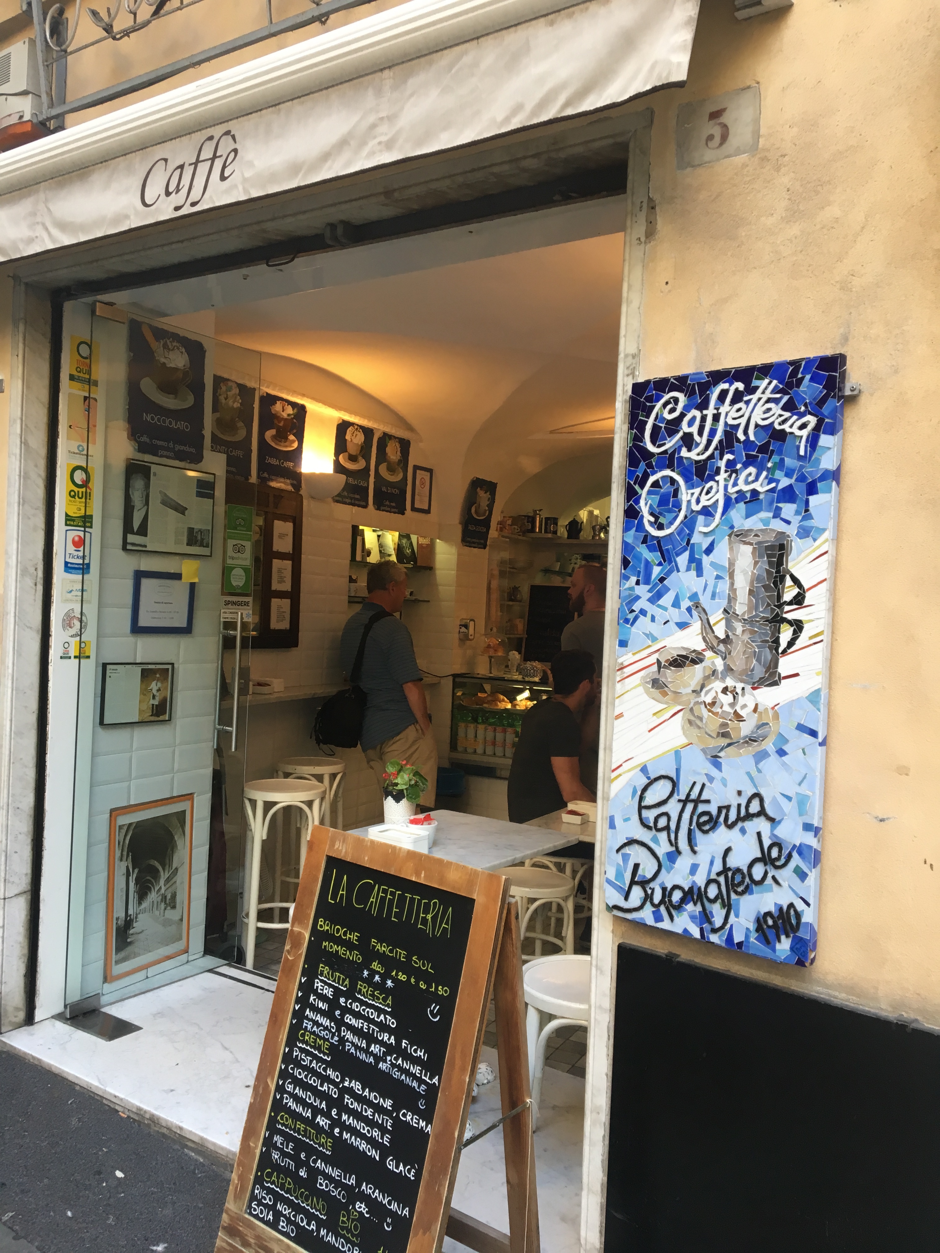 The tiny shop only offered three tables for seating. We watched as people would order espresso and stand at the bar for about five minutes and leave – very different from spending hours in US coffee shops. The pistachio-nutella croissants became a favorite of our and we loved starting each morning here. Upon hearing our day trip plans, the older gentleman owner suggested a few changes that proved to save us time.