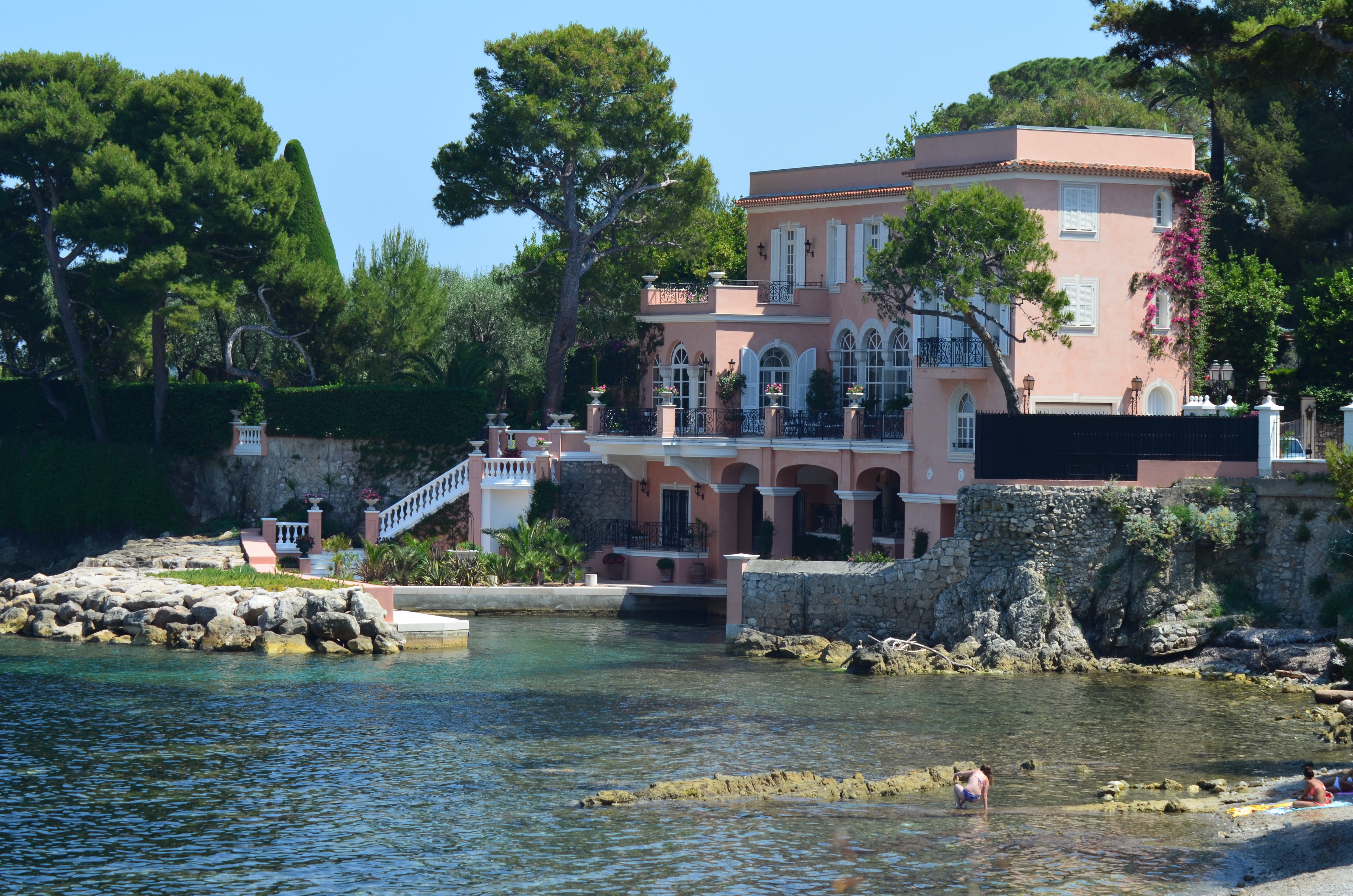 Our next stop was St. Jean Cap-Ferrat. Known as an exclusive hideaway for celebrities, most of the homes were hidden behind large walls. However, the small peninsula features five public beaches. We parked near Paloma Beach and walked the Promenade Maurice Rouvier halfway to the town of Beaulieu sur Mer. Along the way, we passed a pink villa – La Fleur du Cap right on the water. Owned by Charlie Chaplin and later by David Niven, it appeared briefly in “The Trail of the Pink Panther.”