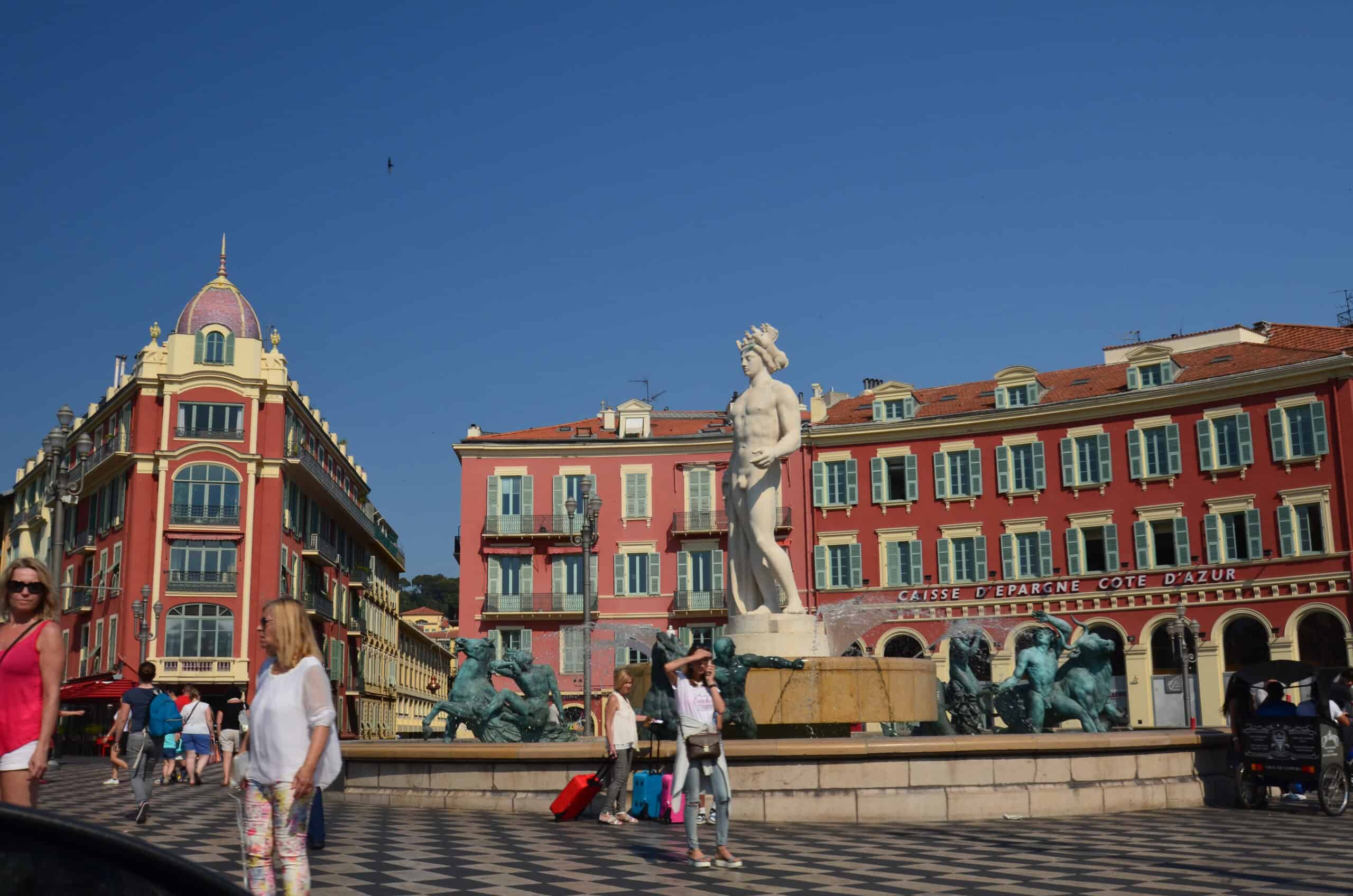 From here, we walked into the pedestrian-only Vieux Nice starting with Place Massena. The Neoclassical square once held a large casino that was torn down several decades ago. We learned that the fountain had been dismantled during the 1990’s, but restored with the original statue of Apollo. The statue (sans fig leaf) caused such an uproar at its unveiling in 1956, that it was transferred in 1979 to the Stadium Charles Ehrmann until the Sun Fountain was restored in 2011 .