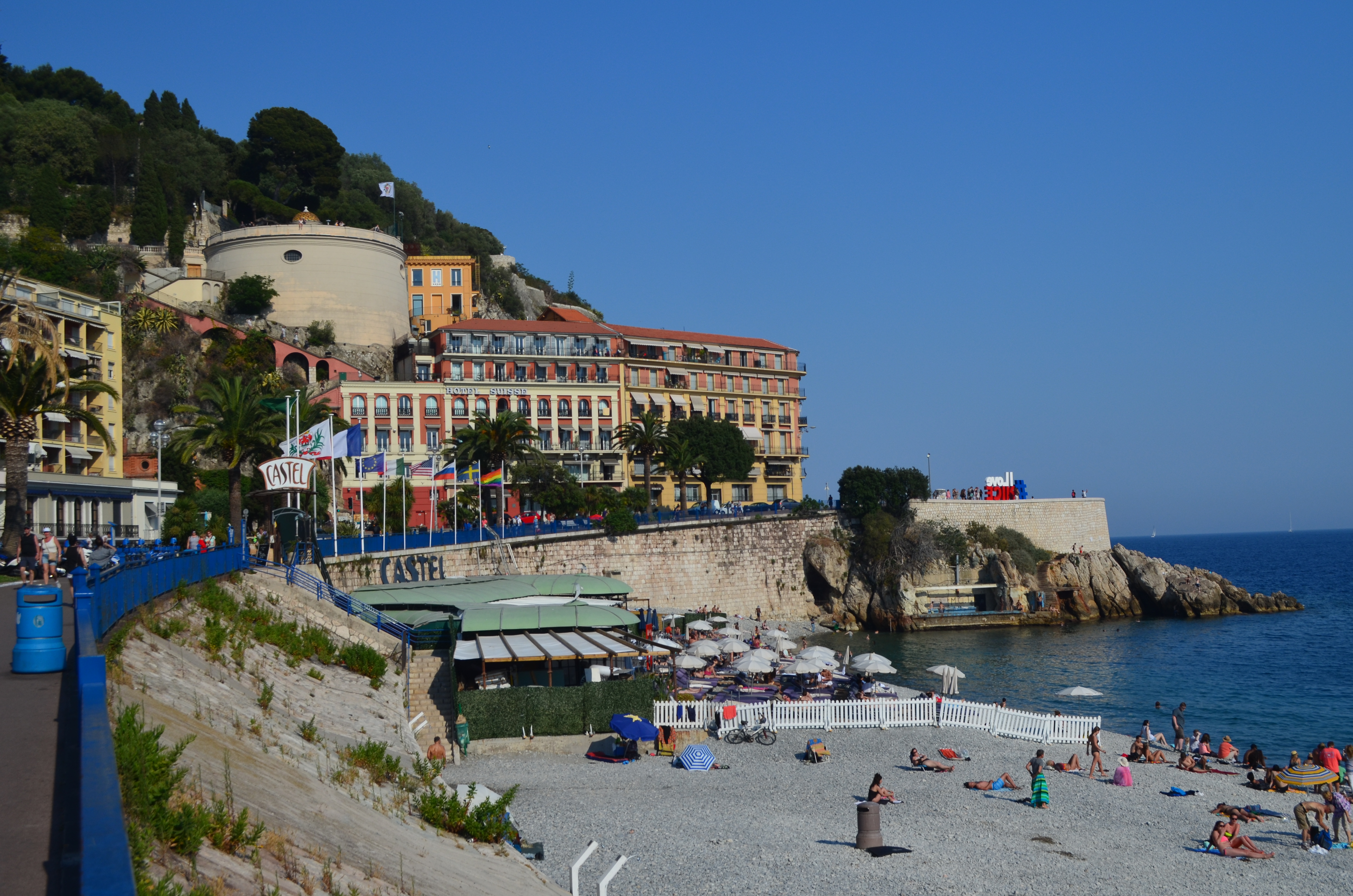 On the Promenade des Anglais, we passed the “I Love Nice” sign erected in honor of the July 14, 2016 terror attack which killed 84 people. The wide, flat promenade spreads itself along the Mediterranean with restaurants and beautiful hotels like the Negresco on one side, and the beach on the other side, complete with palm trees.