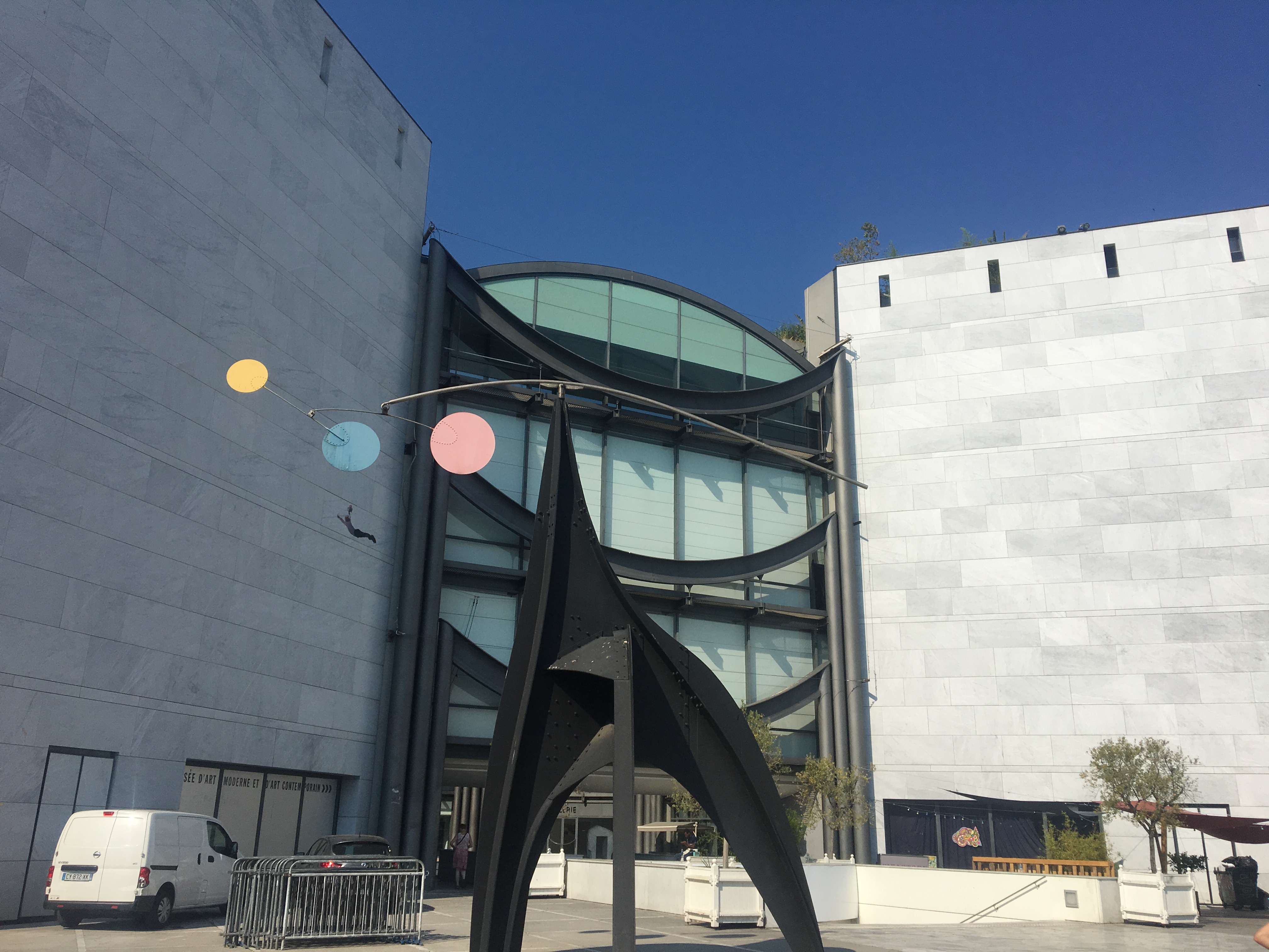 Because this was a quick visit, we didn’t tour any museums. However, we did park our car near MOMAC – Musee d’Art Moderne and d’Art Contemperain (Museum of Modern and Contemporary Art). The grounds featured large grassy areas, sculptures and an architecturally eye-catching building.