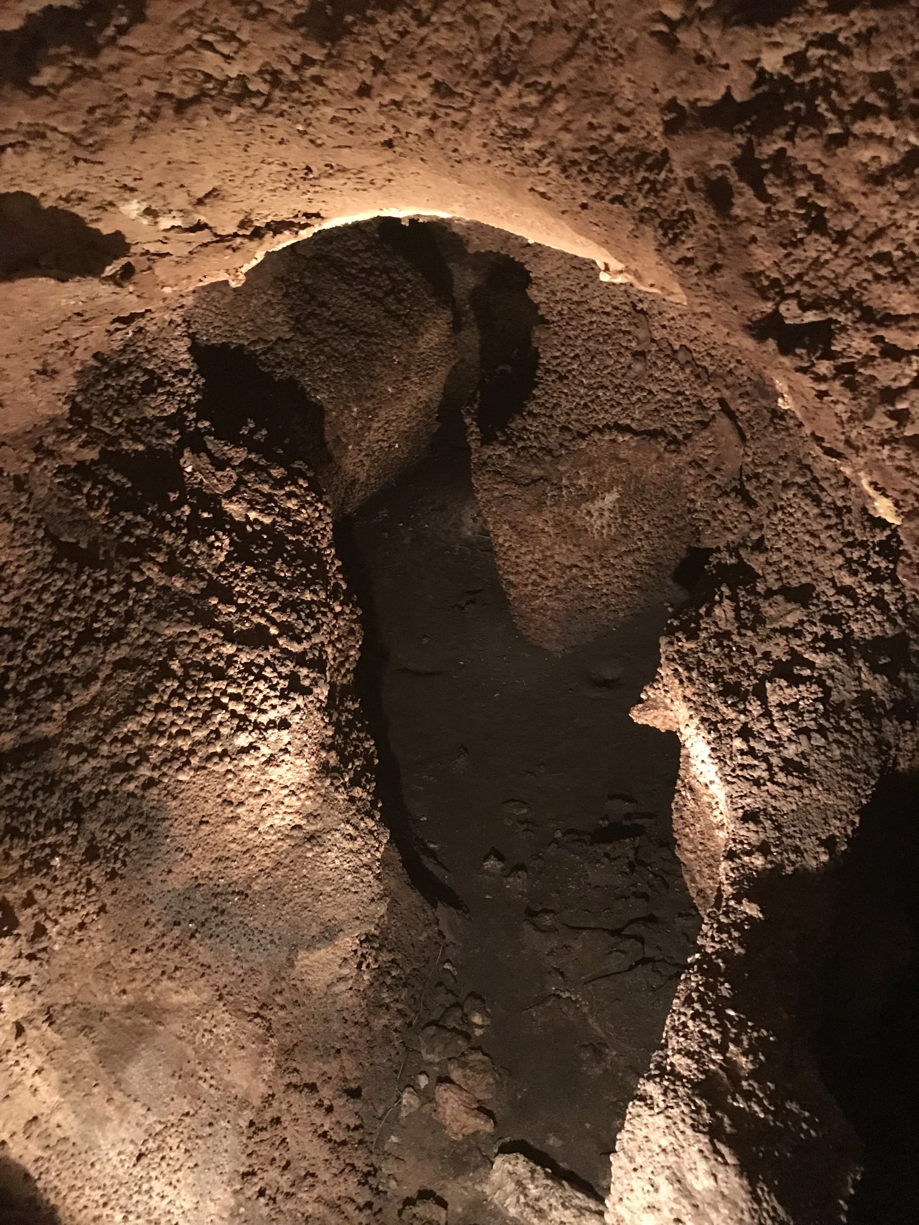 We also passed by a small pool of water that had a bit of a copper color. It’s because in the early days of the cave, visitors constantly threw coins in the water. Over time, the pennies turned the water into the copper-green color. Today, they allow you to throw coins into only one pool “to get it out of your system,” Raphael explained.