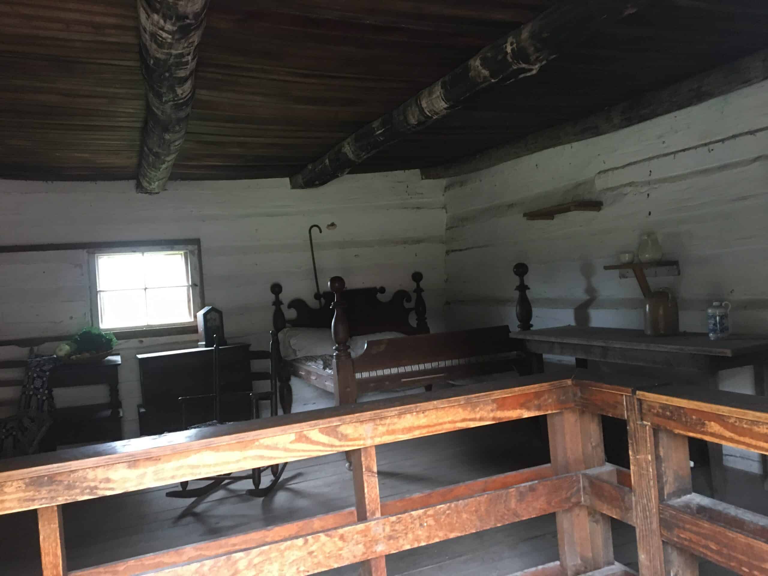 Afterwards, we saw the original farmhouse, which was the precursor to the large mansion. Built out of wood, it resembled a log cabin. Originally it was two stories, but after Rachel and Andrew moved to the mansion in 1821, they converted the farmhouse to a one-story cabin.