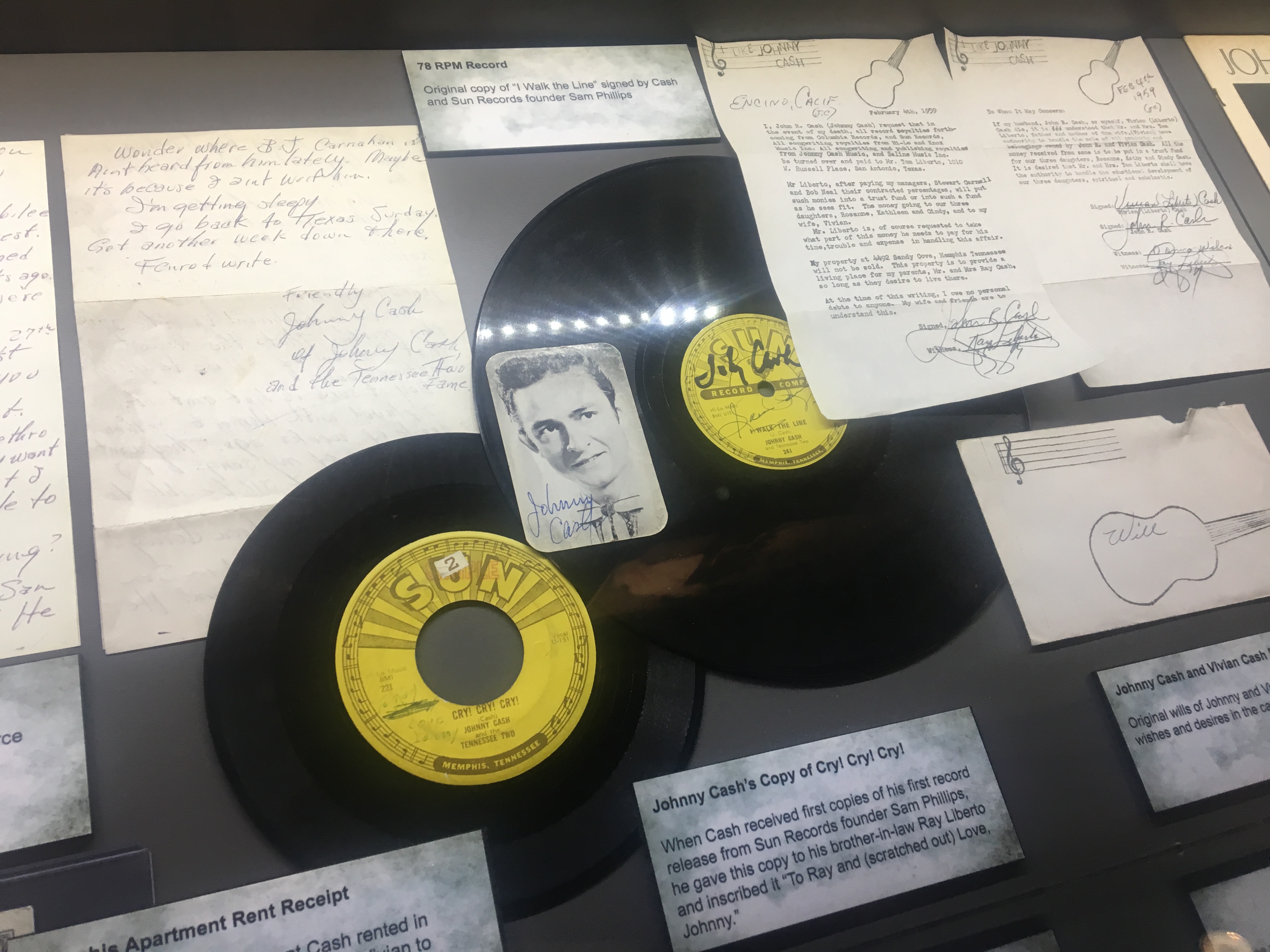 With music coming from the speakers, visitors get a glimpse into Cash’s upbringing, family life and rise to stardom. Most people think of Cash as a country music legend, but his early songs were more rockabilly – blending gospel, folk and rock and roll. As one of the front-runners of the rockabilly movement in the 1950’s, he was first signed at Sun Records in Memphis.