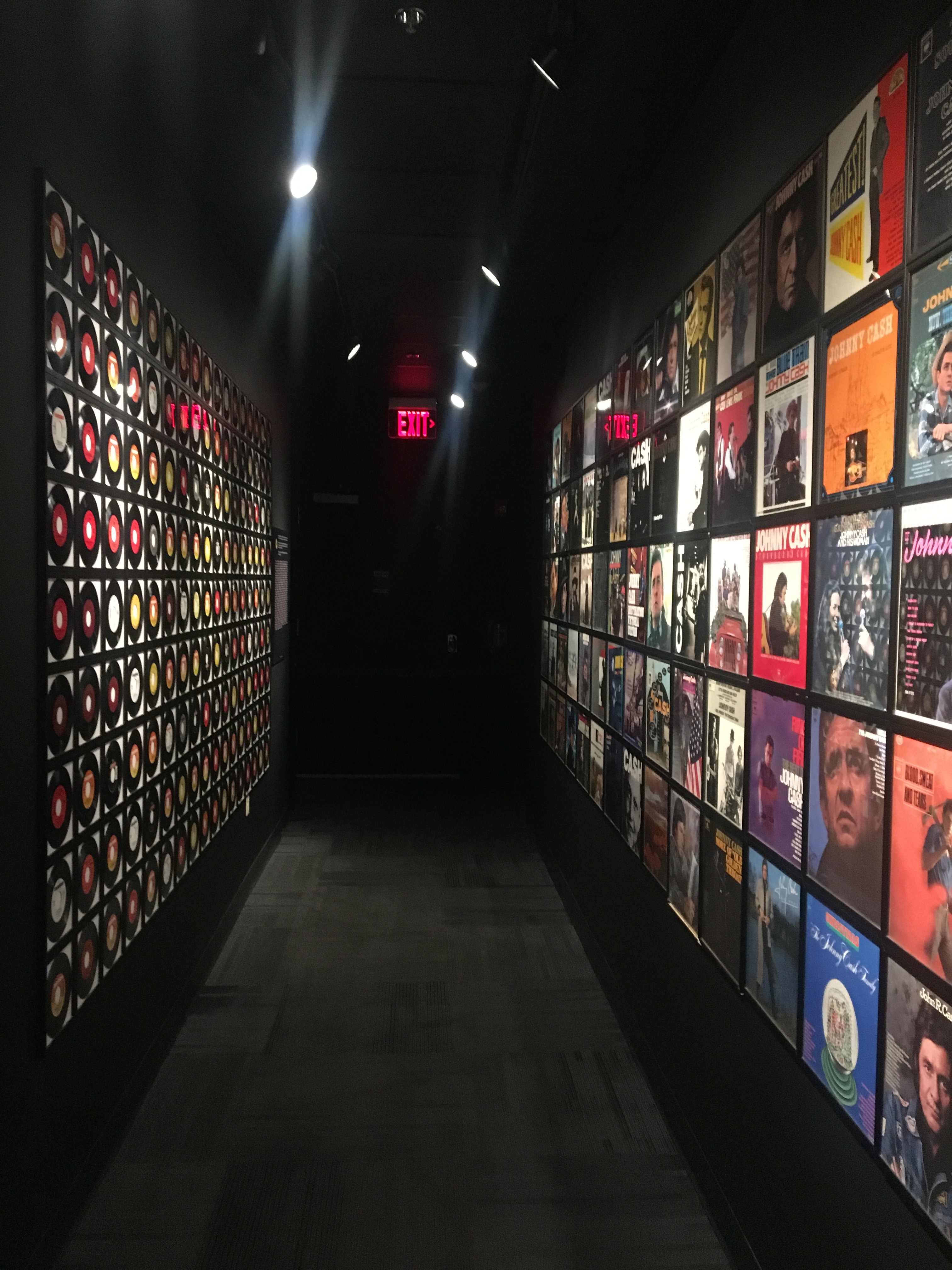 Through memorabilia, we learned about what drove Cash to perform one of his signatures songs, “Folsom Prison Blues” inside the actual prison in 1968, his marriage to June Carter Cash and his struggle with alcohol and drugs. A favorite part for me was seeing the walls lined with album covers and records of Cash’s hit songs. Another case showed a couple of Cash’s 8-track tapes. I hadn’t seen those in years!