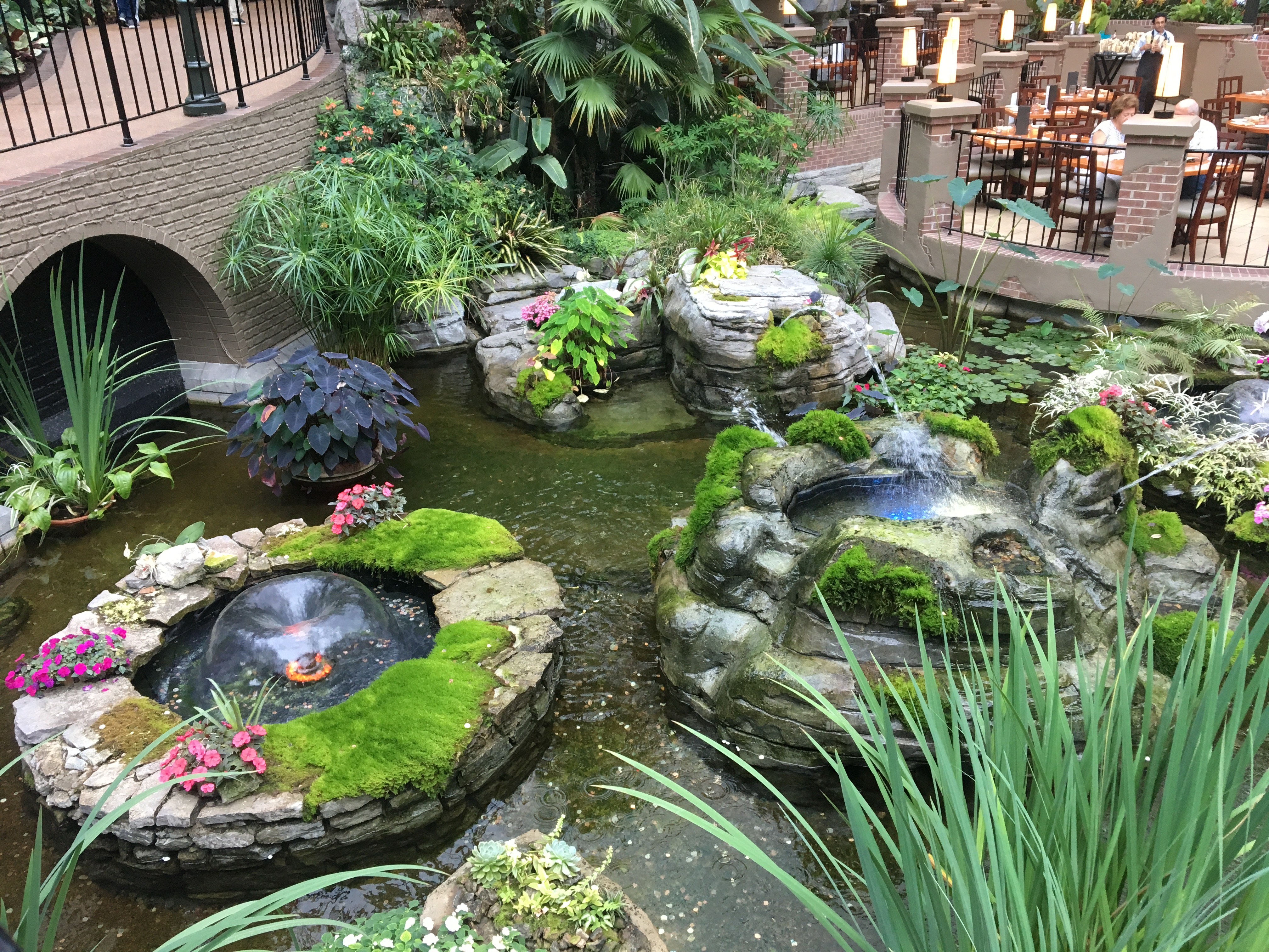 I can’t properly describe it. You just have to experience it. Fortunately, the Gaylord Opryland encourages people to enjoy the hotel grounds. For a small parking fee, you can come in and walk through the enclosed 9 acres of gardens and waterfalls, watch fountain shows and dine at the many restaurants.