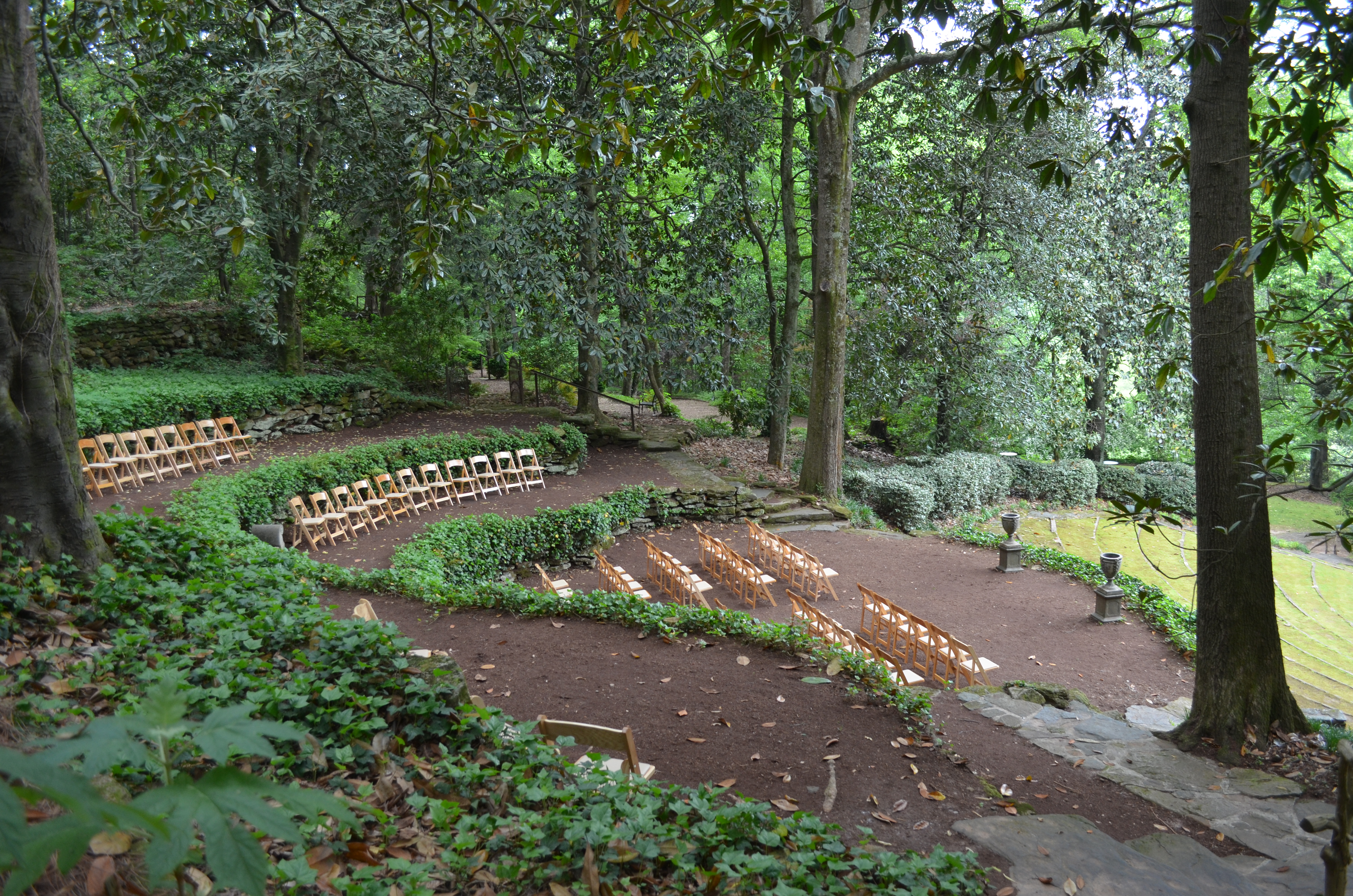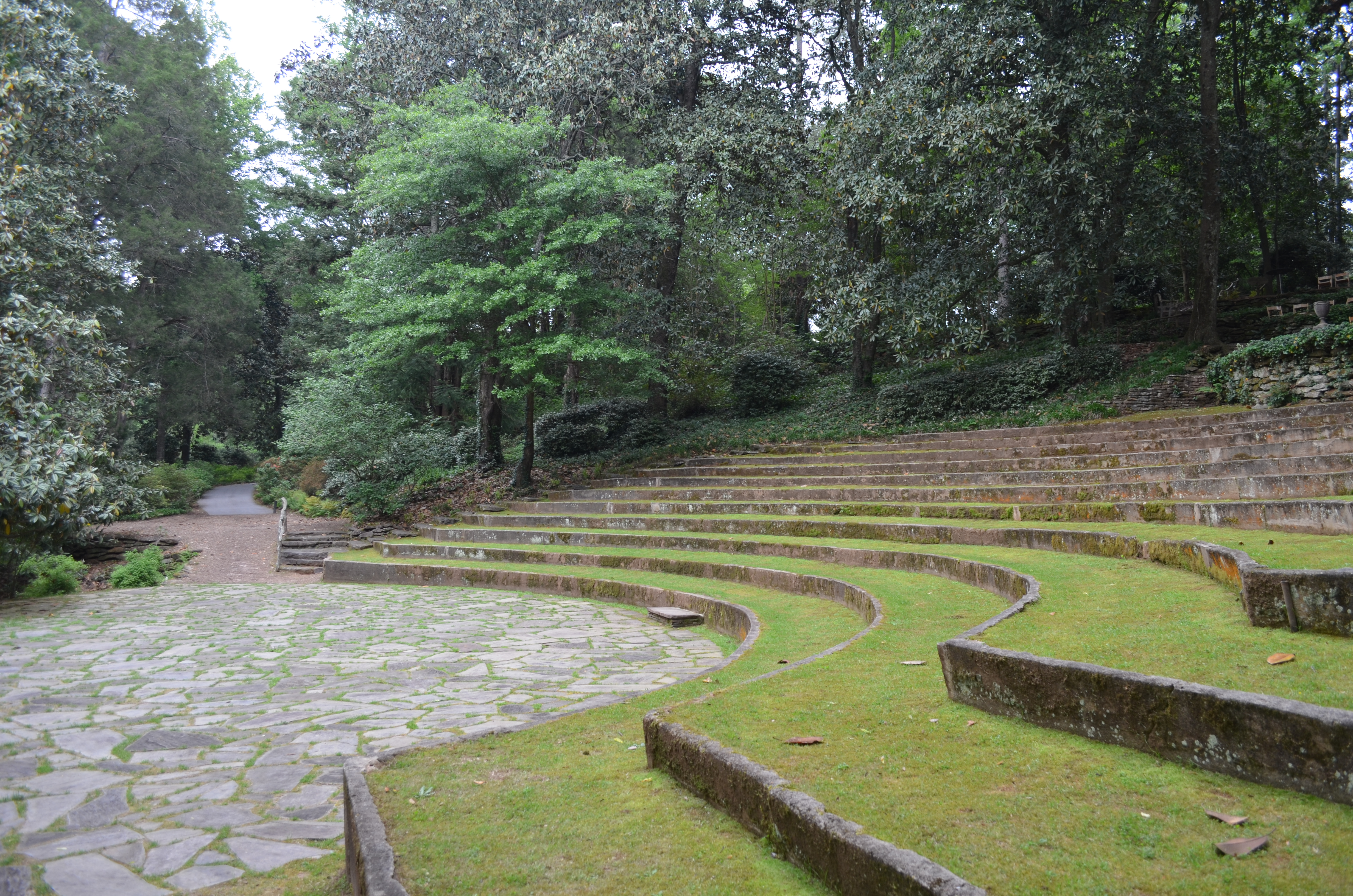 Tranquility permeated the gardens and just on the other side of the pools, we saw terraced seating for a wedding. Just beyond it sat the amphitheatre. I realize now that wedding guests wouldn’t want to sit directly on the ground and without a seat back for a wedding.In its heyday, the 1,000 seat amphitheatre hosted numerous productions by the Wayne P. Sewell Production Company.