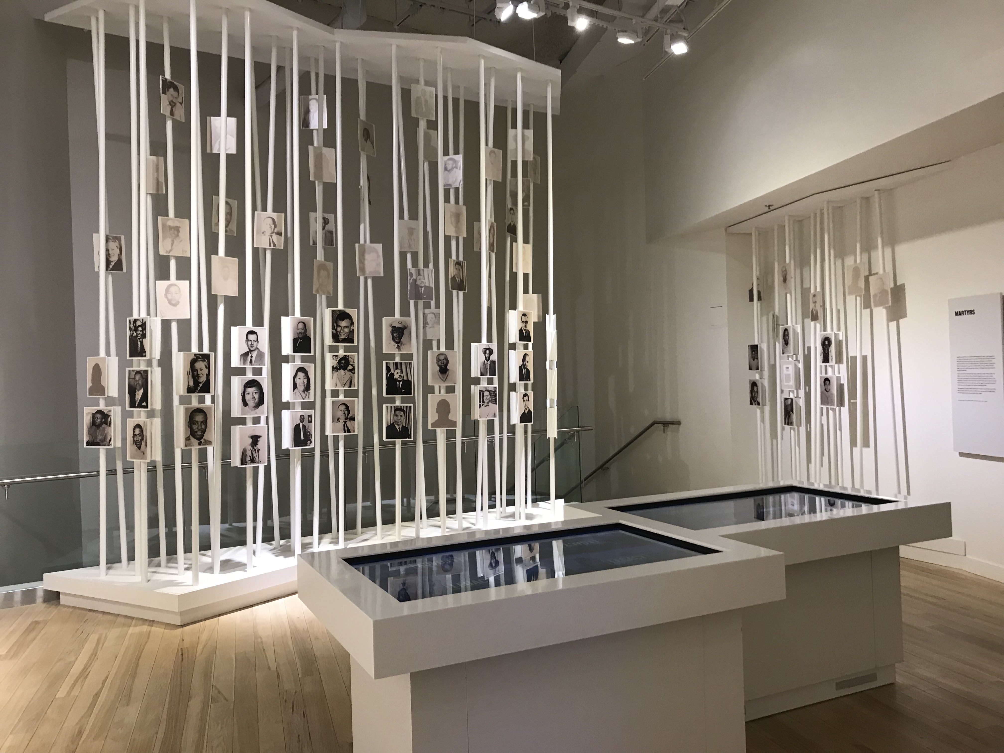 The last section details the assassination of MLK Jr. at the Lorraine Hotel in Memphis with films of Walter Cronkite and Bobby Kennedy announcing King’s death. Pictures show the 3-mile funeral procession from Ebenezer Baptist Church to Morehouse College. The exhibit lead up to the 3rd floor to a room showing people who died during the civil rights movement. On one side is a picture, while the other shows what happened.