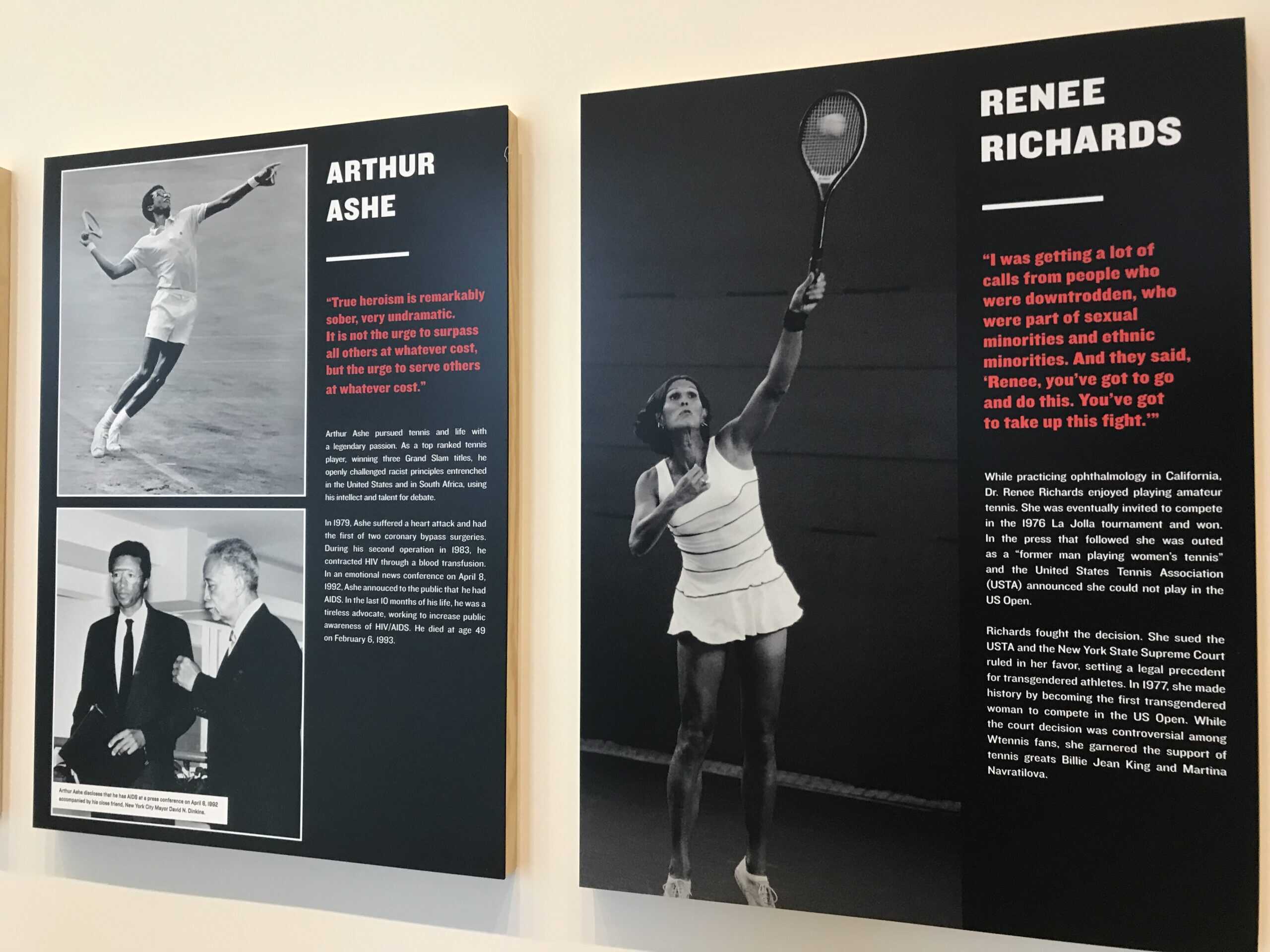 We then saw the temporary exhibit called “Breaking Barriers: Sport for Change.” It focused on athletes who used their status to fight for human rights: athletes such as Muhammad Ali, Billie Jean King and Jesse Owens. I learned about US runners, Tommie Smith and John Carlos who at the 1968 Olympics in Mexico City, raised their black-gloved fist in a salute while on the podium. Smith said it was “a human rights salute.” Regardless, the IOC expelled them. Back in the US, they faced criticism and death threats.