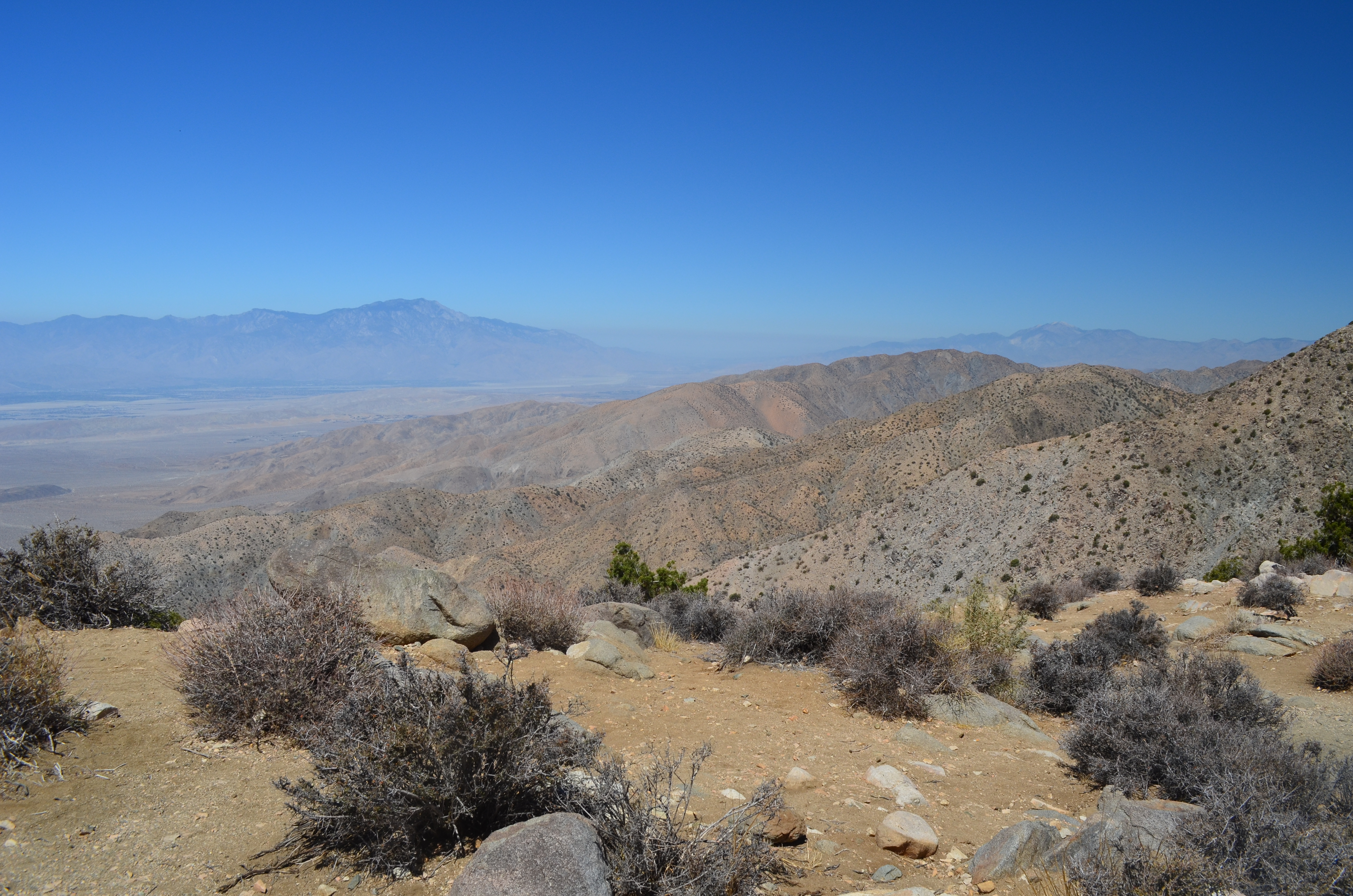 With the hike behind us, we drove to Keys View. With an elevation of 5,500 feet, we enjoyed the breeze and slighter cooler temperature during the short walk to the overlook. Once there, clear views of the Coachella Valley welcomed us. A couple from Palm Desert pointed out Palm Springs, Palm Desert and Indio in the far distance.