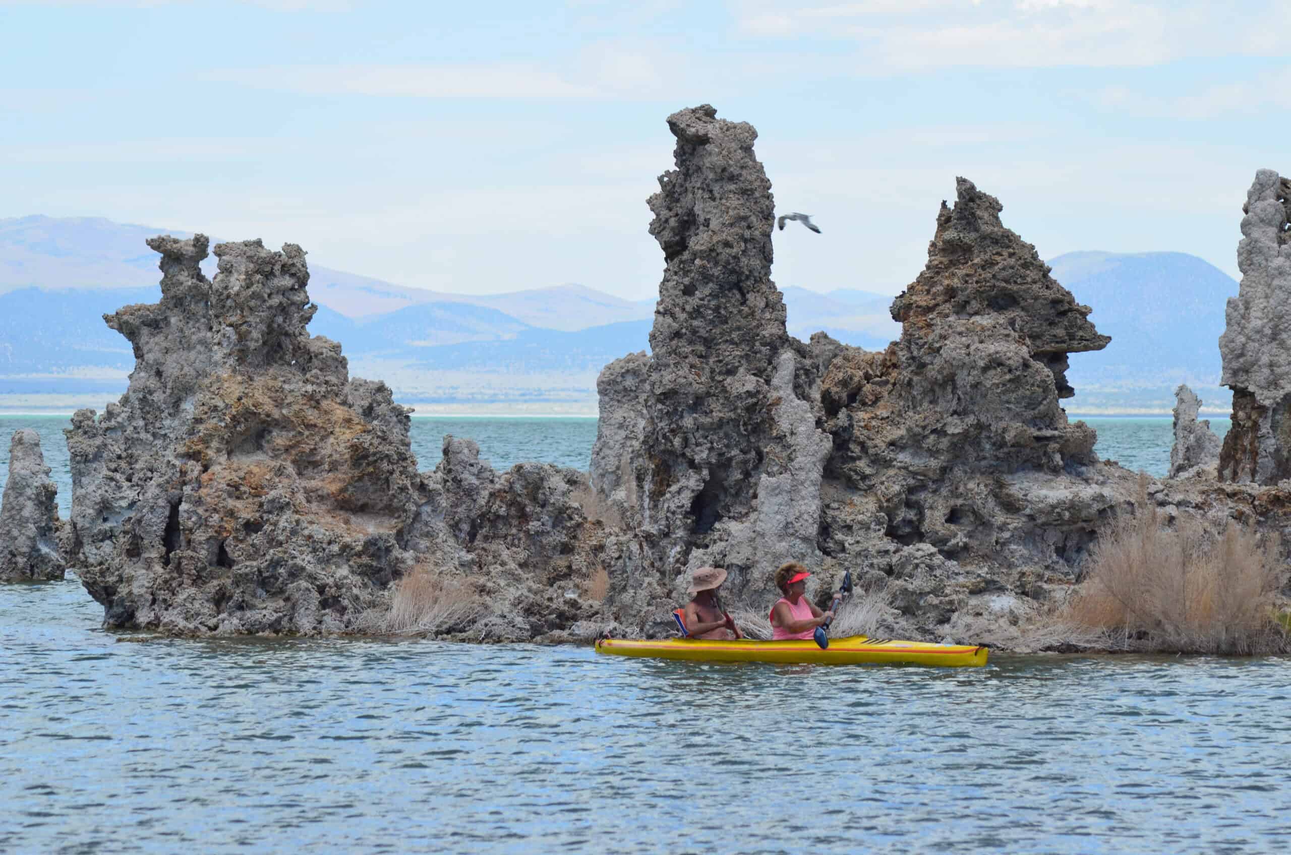 The pinnacle of the Highway 395 drive by far was Mono Lake. Pronounced “Mon-Oh,” it is known as one of the oldest lakes – over one million years old. And with no outlet, it is saltier than the ocean. But what makes it highly unusual are limestone rock formations, called tufas, that jut up out of the ground like castle towers. I don’t claim to understand it, but tufas form when calcium mixes with the carbonates in lake water.