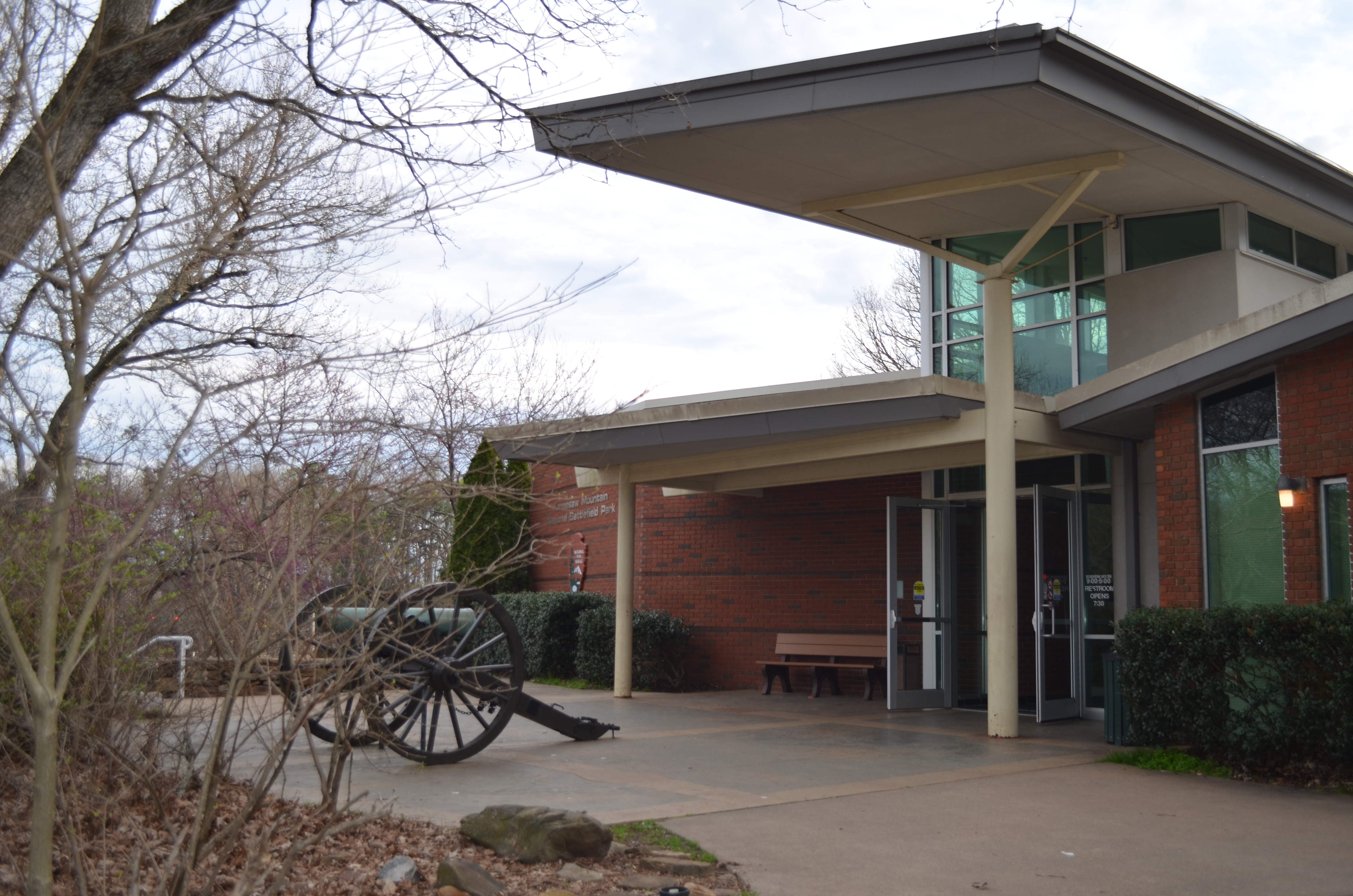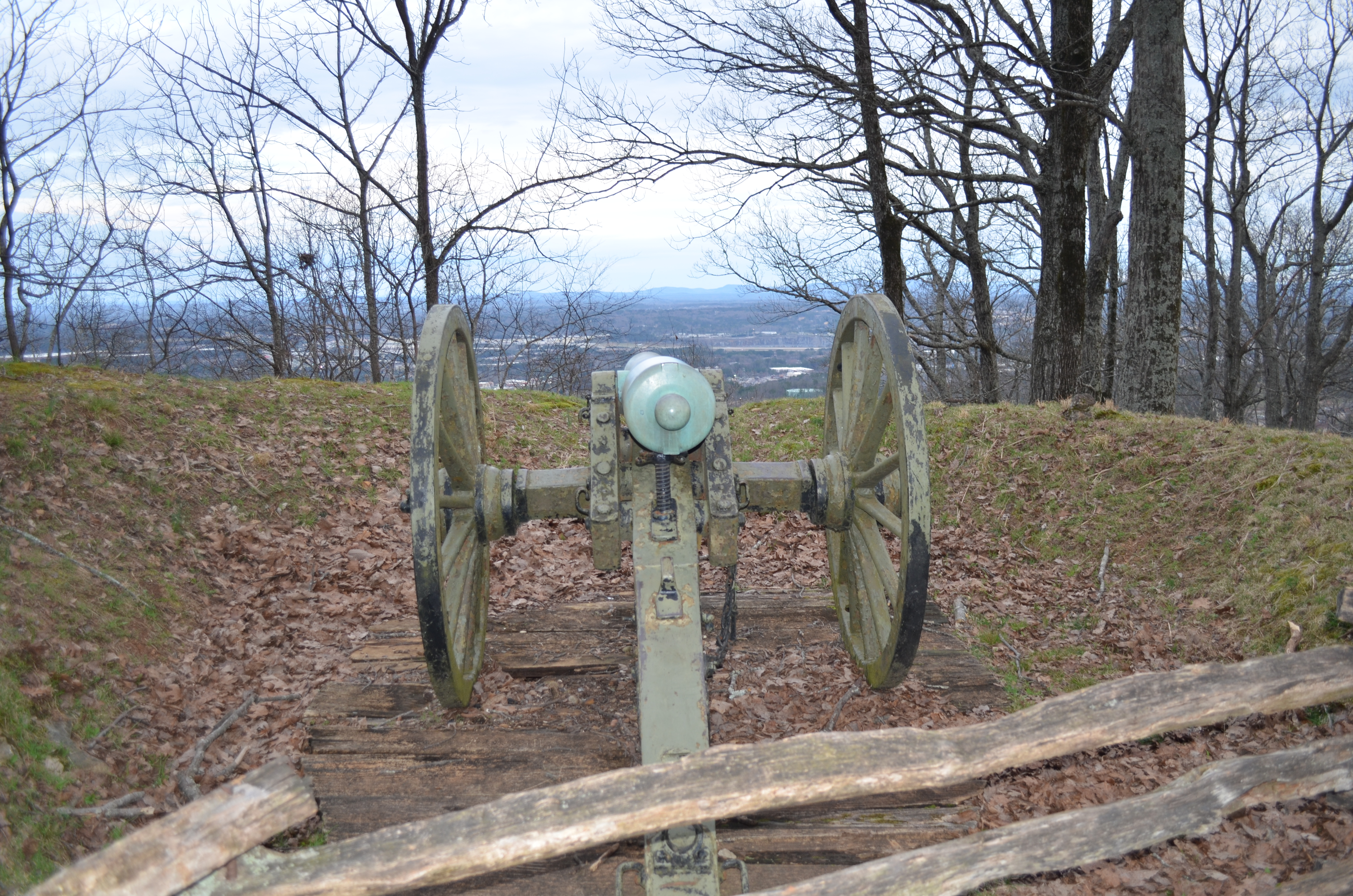 Picking up our pace again, we made the final push to the top. Arriving at the mountain road, open to shuttles only, the path turns into concrete. A few historical cannons met us which felt really out-of-place. I mean, we’re walking in nature under these trees with birds singing; yet we could hear the bustle of Kennesaw below us. Now with the cannons, my senses couldn’t figure out where I was. Present day? Past? City? Country?