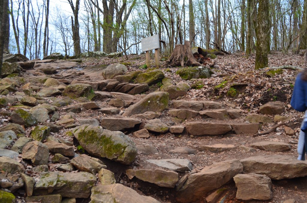 Bunches of rocks were underneath us. A jogger came up and rested for a few minutes while other people made the climb.
