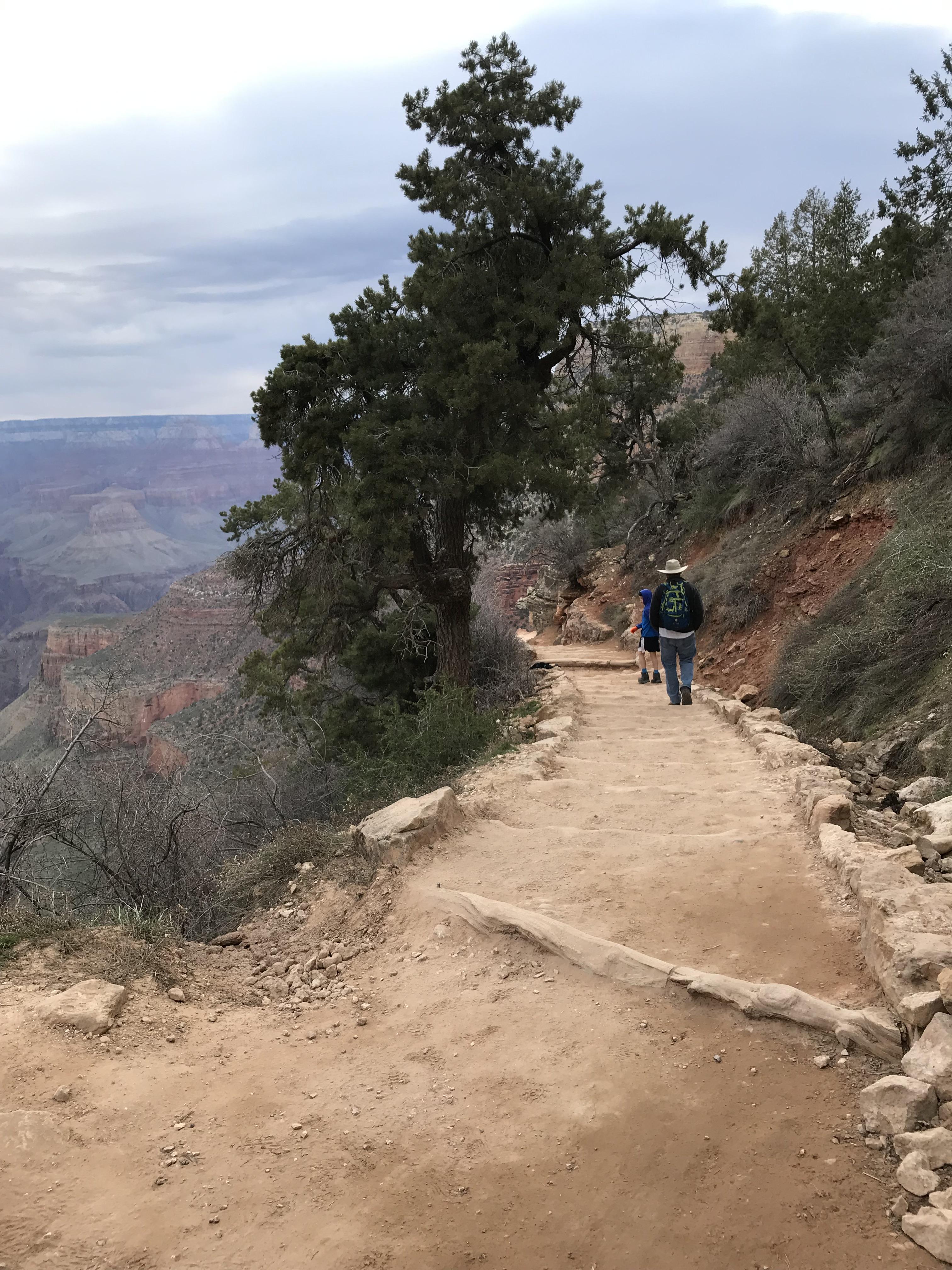 My husband walked the South Rim trail from our lodge to the visitor center. The relatively flat path took him past Mather Point.