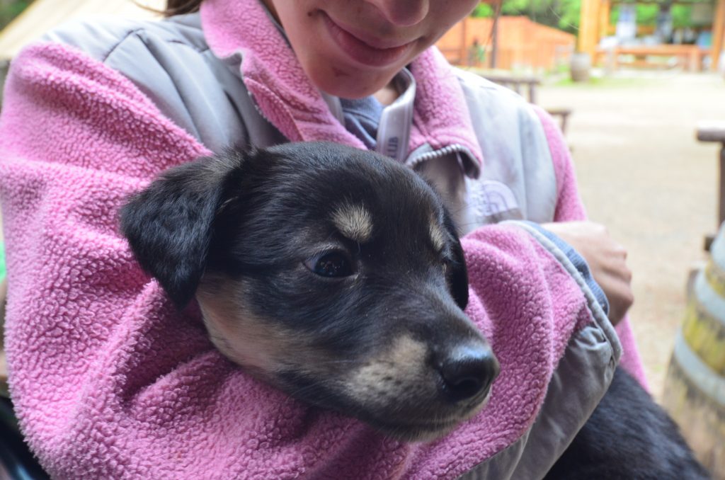 A huge highlight for us was playing with the huskey puppies. Since sled dogs are trained at a young age, they need socialization with humans. We had to stay out of eyesight of the mama dog who guarded her pups while the workers gathered puppies and handed them to us. They climbed on us, nibbled our fingers with their sharp puppy teeth and wagged their tails. Before we knew it, we had to board the van back to town.