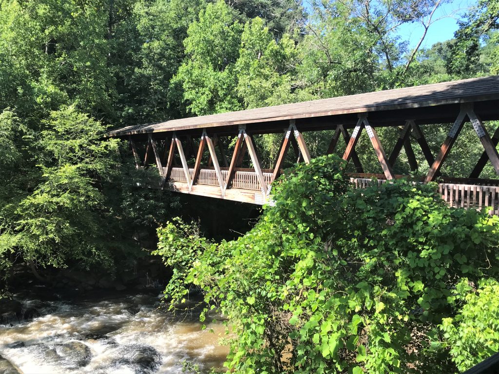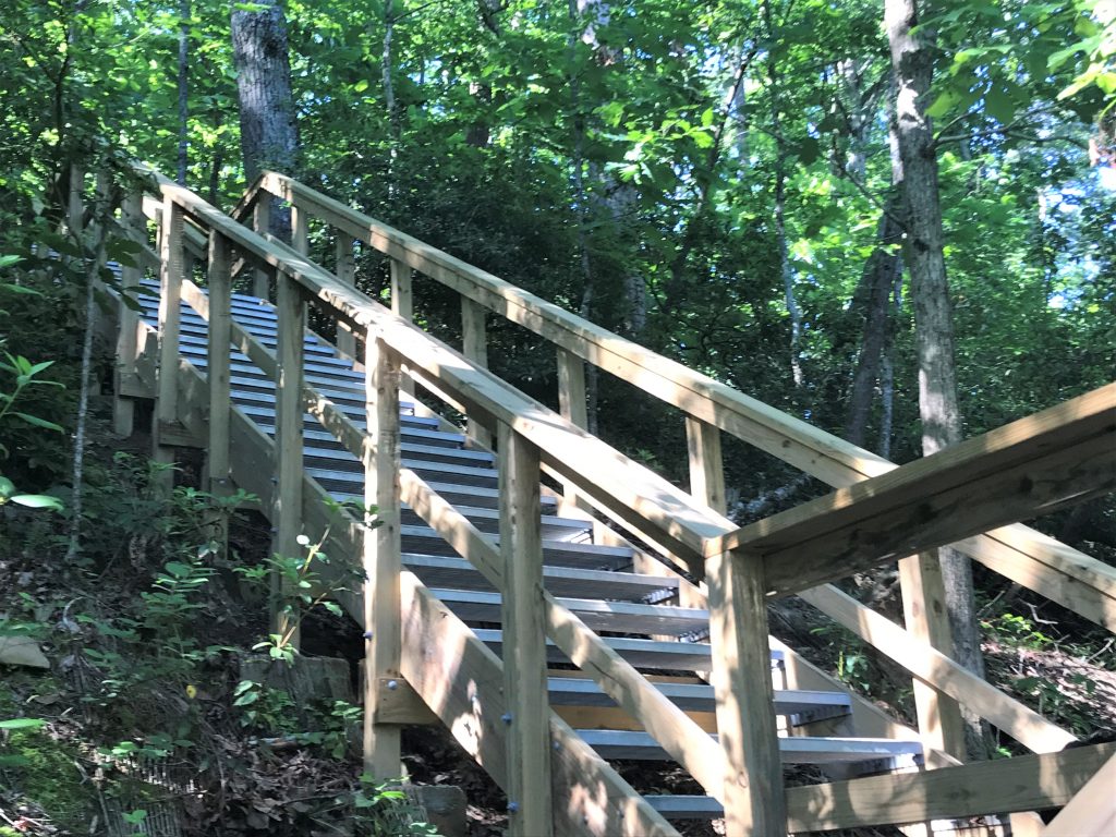 Crossing back over the covered bridge, we climbed the new staircase leading back to the trails at the Chattahoochee River NRA. Although the stairs may look daunting, they are much easier than the eroded trail that existed before 2018.