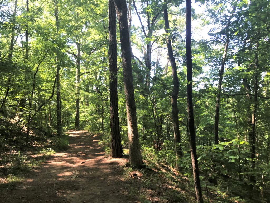 At VC 23, we could hear a few cars on nearby Grimes Bridge Road to the east. However, the trail soon turns west at Vickery (also called Big) Creek and leaves civilization behind.