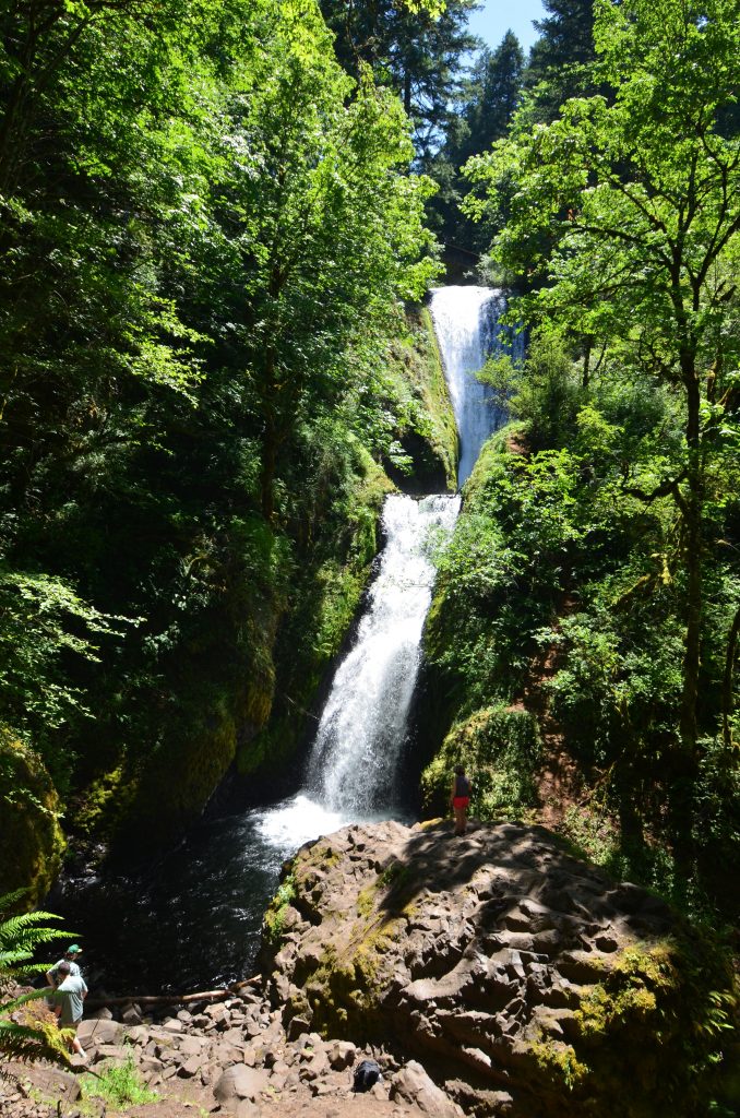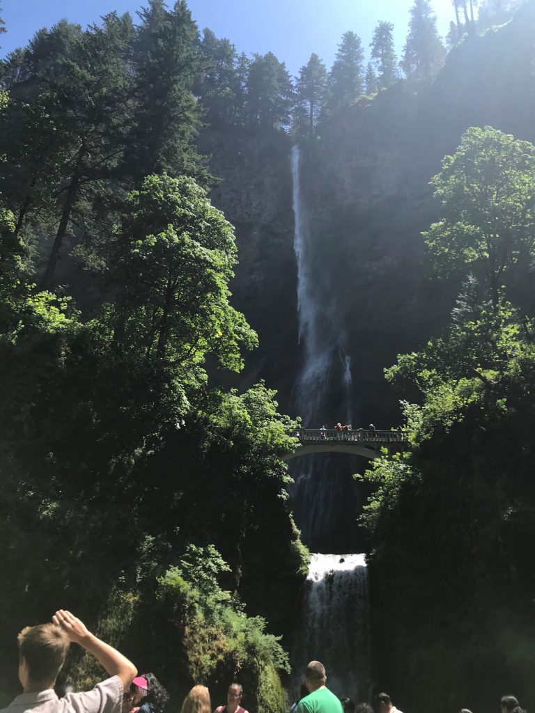 The total trail was about a mile. As we descended into a lush forest of trees, we only saw a handful of people hiking – a welcome relief. Soon we heard the roar of the falls. At first, we came to a footbridge and saw water trickling down the rocks. Thankfully, we still continued along the path around a bend and up some stairs. From this vantage point, we saw the wide falls cascade down the rocks. Although not as large as nearby Multnomah, we enjoyed having space to be still, take in the surrounding beauty and listen to the water gush loudly. I’m so glad we didn’t miss this!