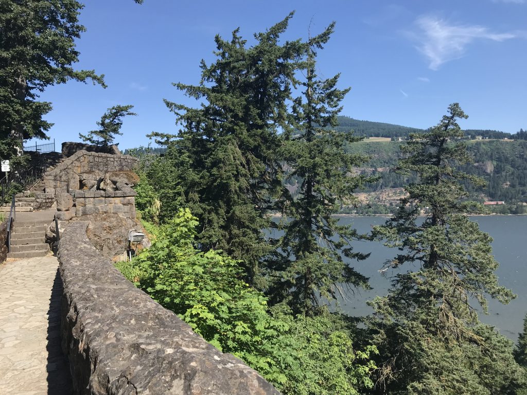 From Multnomah and the other waterfalls, the scenic highway climbed nearly 600 feet on “several figure-eight loops until we reached Crown Point summit.
