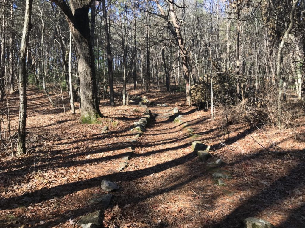 Soon we came to a low-lying stone wall. While nobody knows who built this crumbling wall or its purpose, it extends over 800 feet. Experts estimate the wall to be somewhere from 500-1500 years old. The Cherokee Indians who inhabited the area attributed the wall to the “moon-eyed people” they drove out.