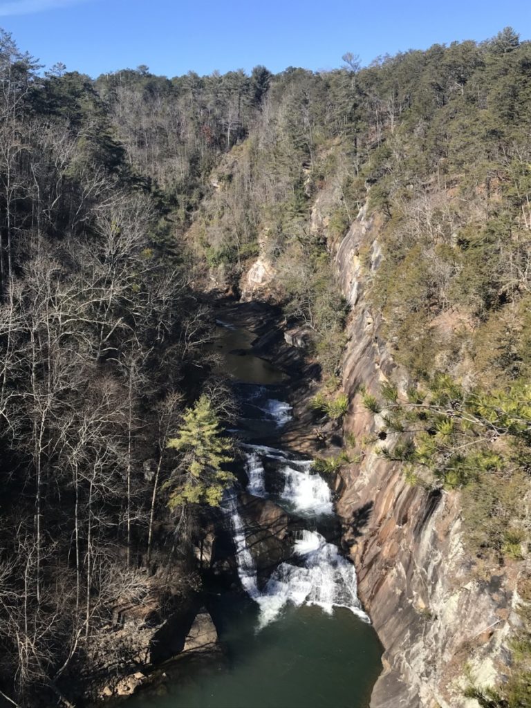 The logical first place to start was Tallulah Gorge State Park. Not only does it boast multiple waterfalls, but also a 900-foot canyon stretching 2 miles. The area gained attention in 1970 when tightrope walker Karl Wallenda crossed the gorge in 20 minutes, complete with two handstands!