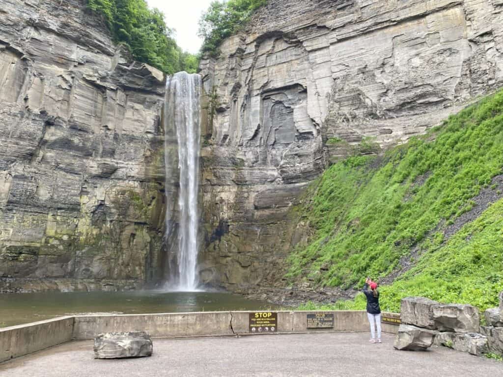 Before heading to Buttermilk Falls, we visited Taughannock Falls (pronounced tuh-gan-ick) earlier that morning. Located about ten miles from Ithaca, Taughannock boasts the tallest single-drop waterfall in the Northeast. Large canyon walls surround the 215-foot waterfall, making it a popular spot for tourists and hikers.