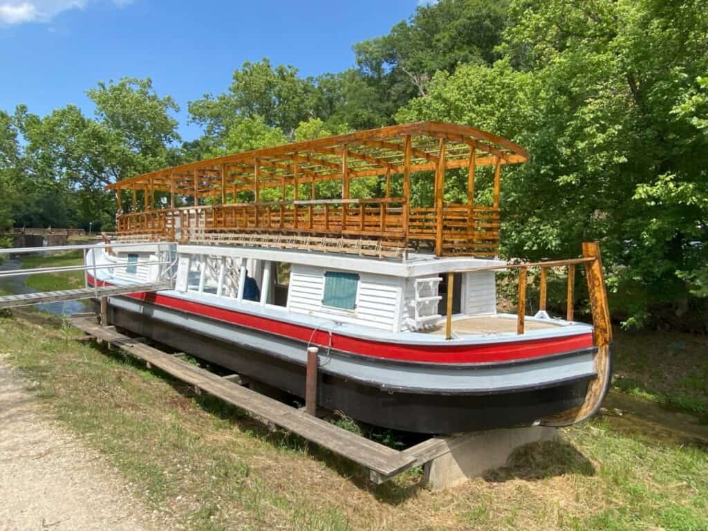 We walked about a half-mile past several locks before coming to the Charles F. Mercer, a replica barge that takes visitors on a journey through a lock. While the barge wasn’t operating on the day we visited, I took a trip on one of the canal barges back in 1989.
