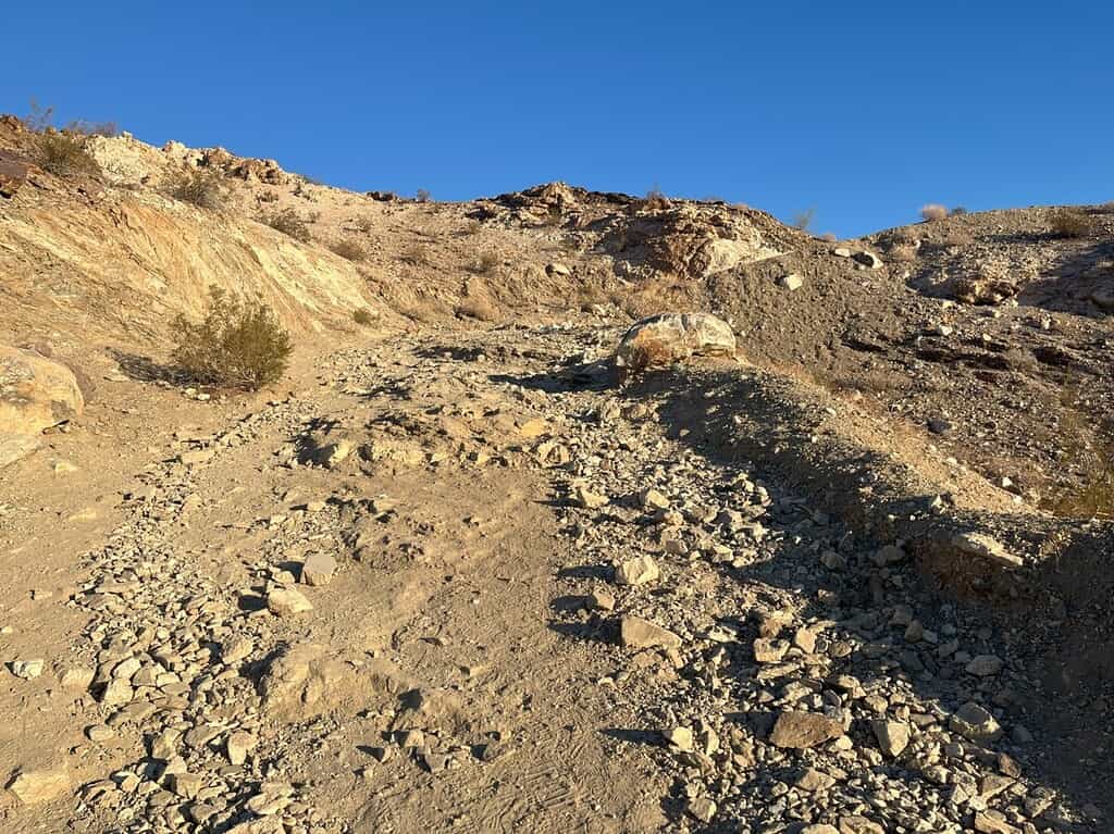 By this point, I thoroughly enjoyed the trail. I couldn’t see the Cross yet, but the trail was astounding. Even though most of these pictures in this post look the same – a brown desert trail with no vegetation – it wasn’t. Each bend afforded different views. Although I was still hiking uphill, it didn’t feel as steep. At the junction with the Hopalong Cassidy Trail, I headed left onto the Cross Loop Trail.