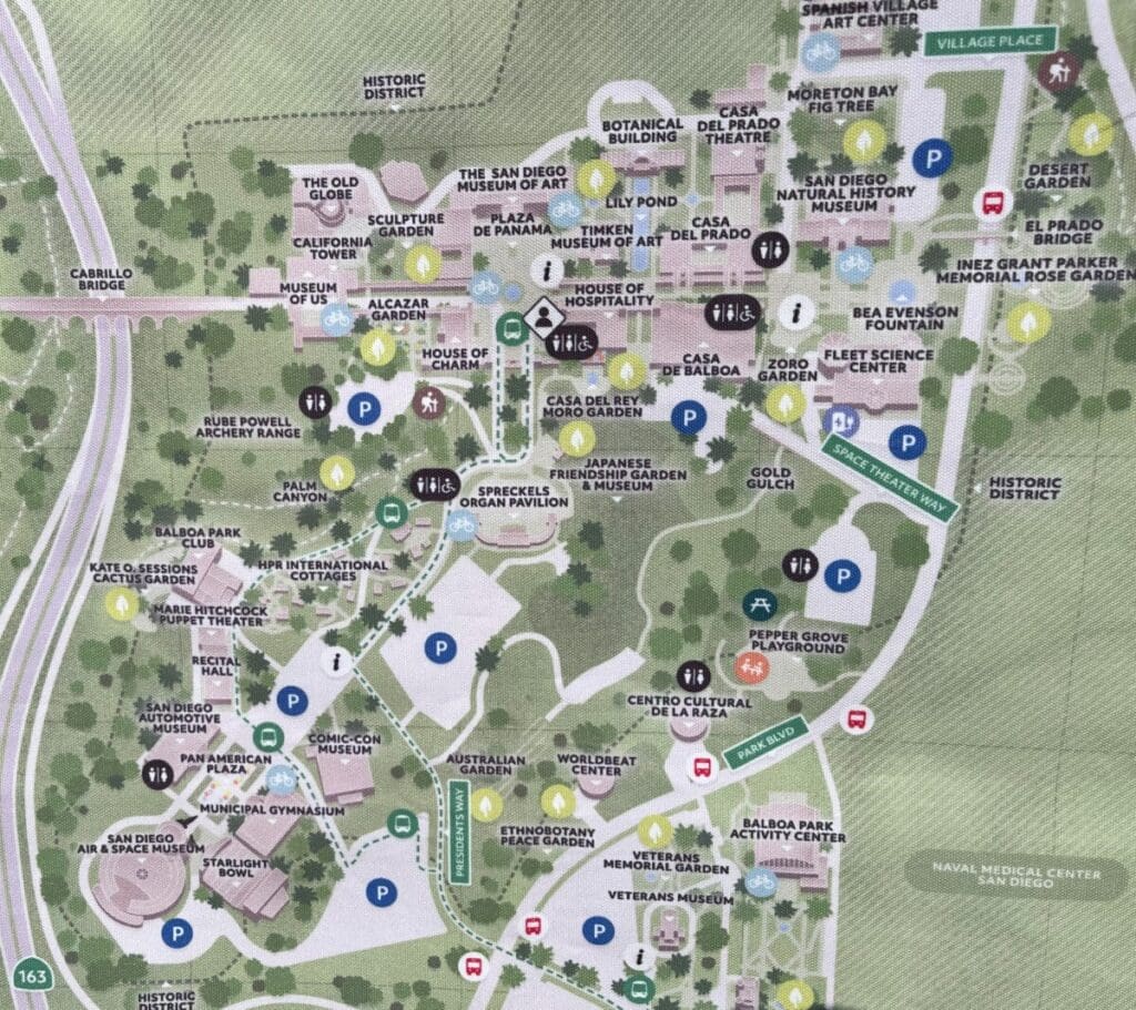 Today, Balboa Park encompasses 18 museums, multiple gardens, the San Diego Zoo, and many historic buildings. At 1,400 acres, it’s larger than NYC’s Central Park.