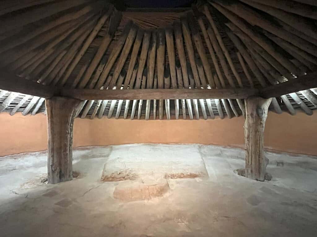 Ducking our heads, we walked through the entrance into the ceremonial chamber. Inside it was dark, but our eyes soon adjusted to a cavernous space held up by timbers. Up until this point, I thought mounds were only used for burial grounds.