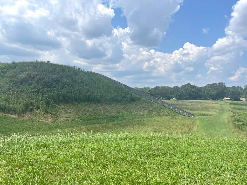 At just 10 feet tall, Mound C contained burials as found by major excavations in the 20th and 21st centuries. Many of the items housed in the museum before 2023 (more about that later) came from those excavations.