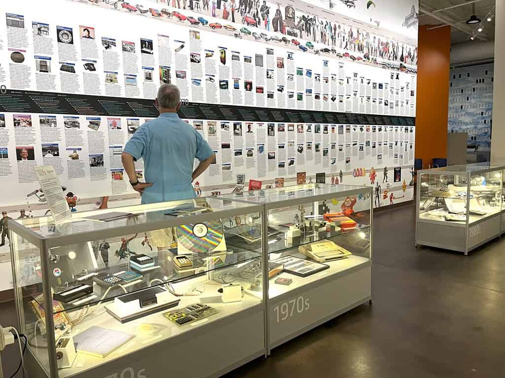 The expansive timeline records major innovations, organizations, and key players up to the present. Mathematical milestones and modes of transportation, as well as popular fads and toys, also follow along the timeline. I hadn’t considered it, but items like the abacus and vacuum tubes laid the groundwork for later computers and technology. While you don’t have to read every single blurb, you will learn a lot of history along the 1,000-square-foot timeline.